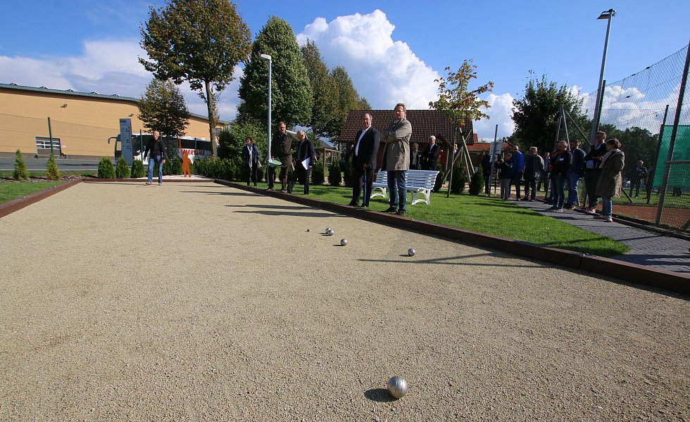 Die Kugel rollt: Positiv beeindruckt wurde die Kommission von der neuen Bouleanlage des SCW Liemke.