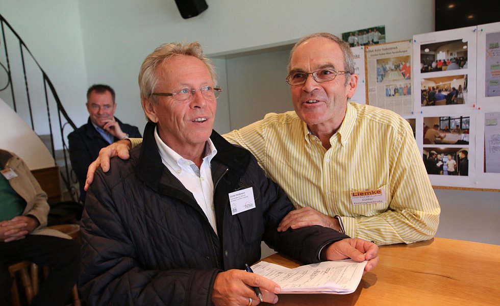 Jury-Chef Günter Heidemann (l.) und Dorfentwickler Jürgen Kerstingtombroke beim Schlusswort.