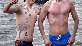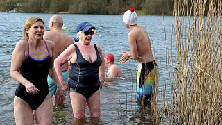 Schloß Holte-Stukenbrock: Neujahrsschwimmen der DLRG im Sennesee