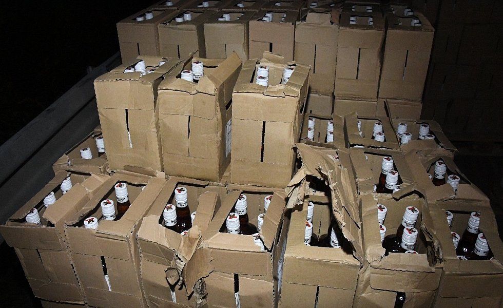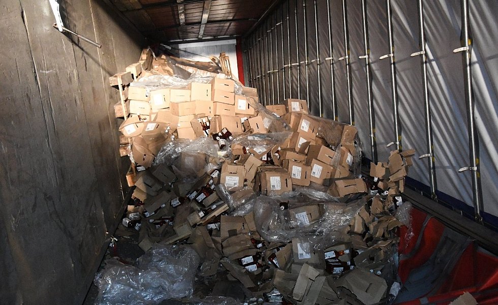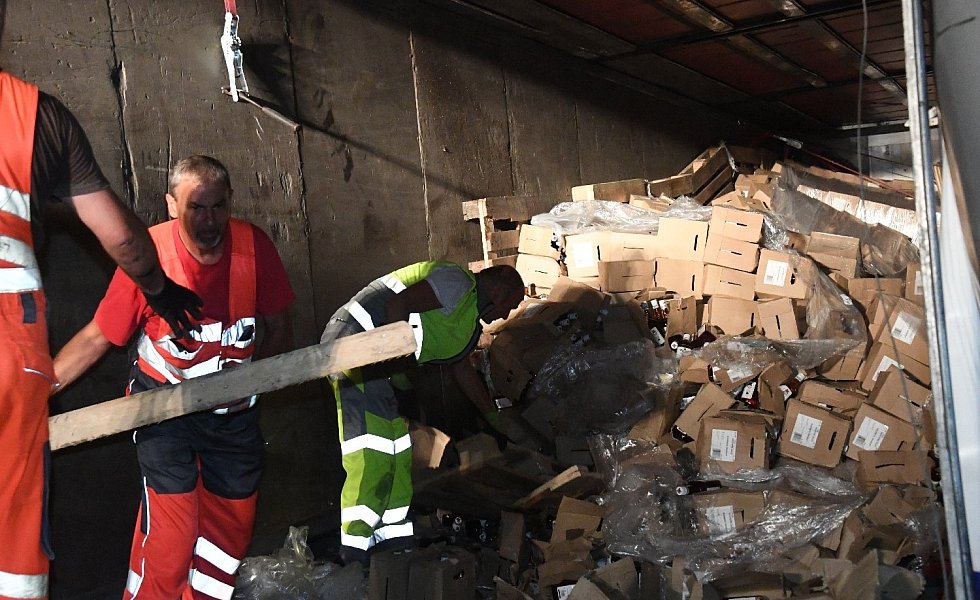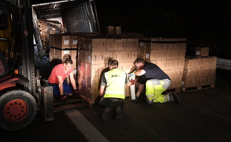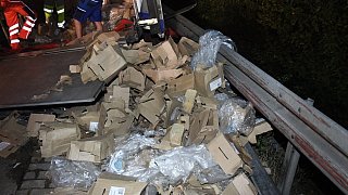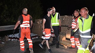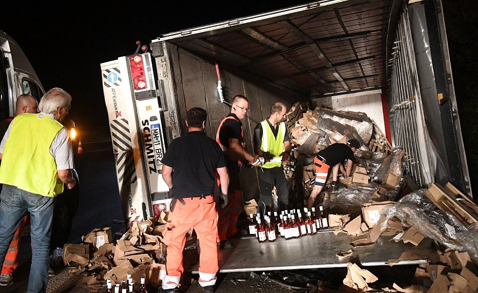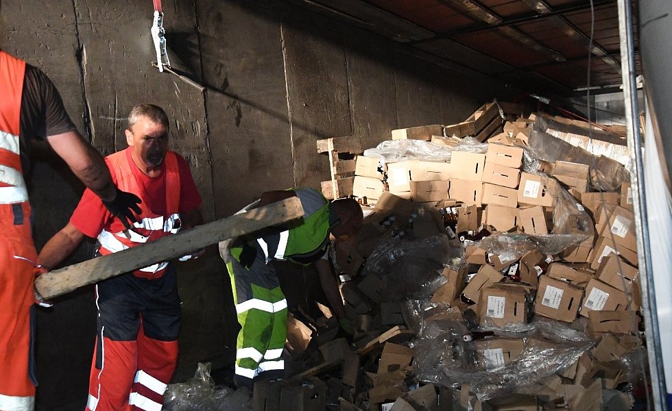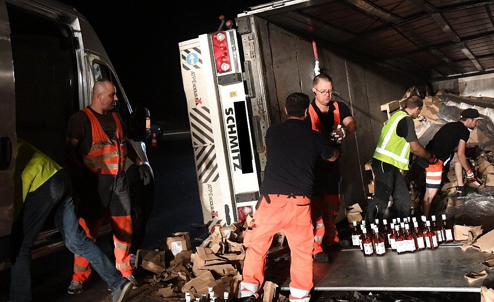 Mit zahlreichen Helfern musste die Ladung de Whiskey-Lkws geborgen werden.