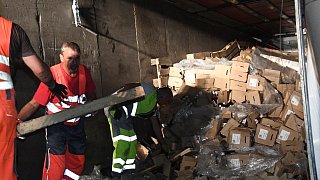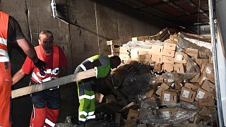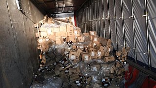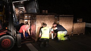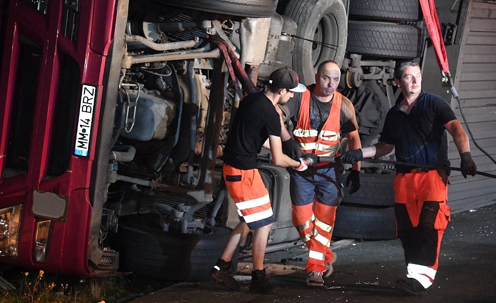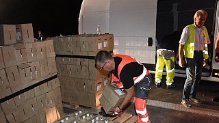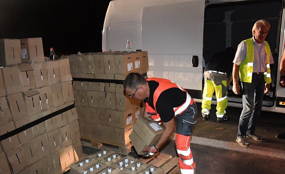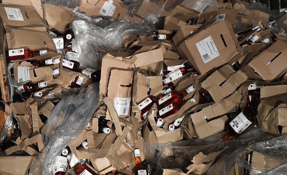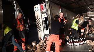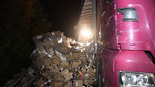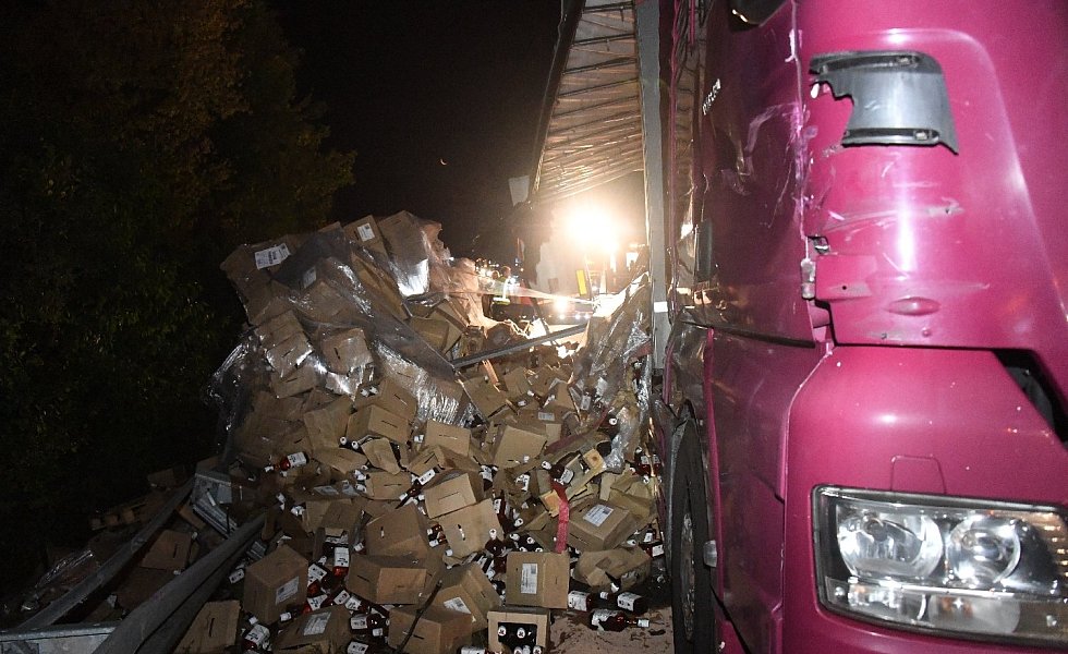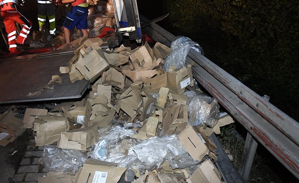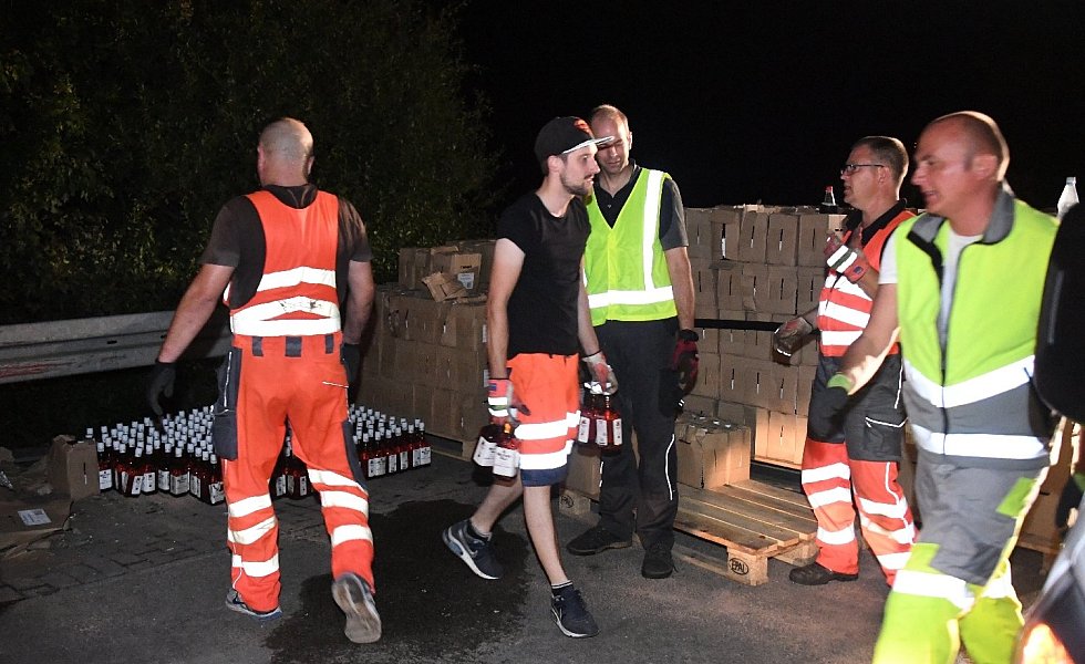 Mit zahlreichen Helfern musste die Ladung de Whiskey-Lkws geborgen werden.