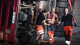 Komplizierte Bergung nach Lkw-Unfall auf der A2 bei Rheda-Wiedenbrück