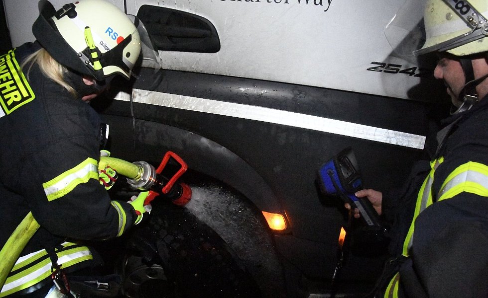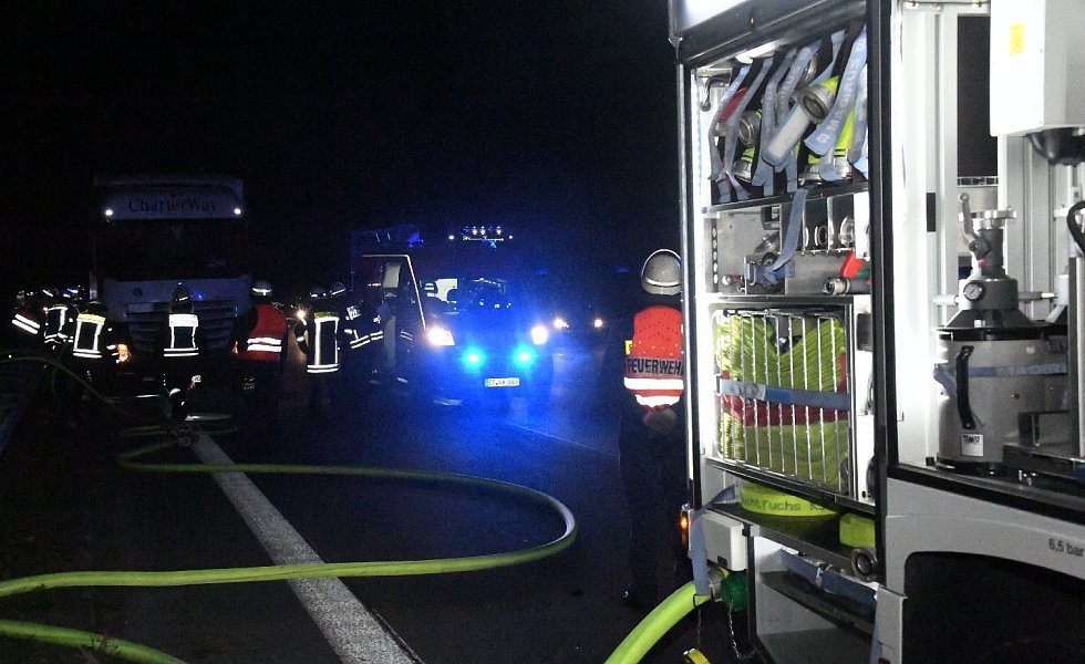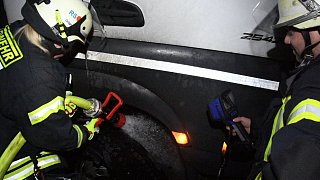 Lkw-Reifen gerät auf der A2 bei Rheda-Wiedenbrück in Brand