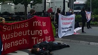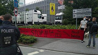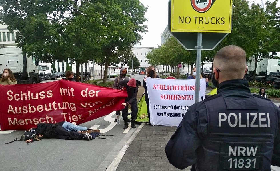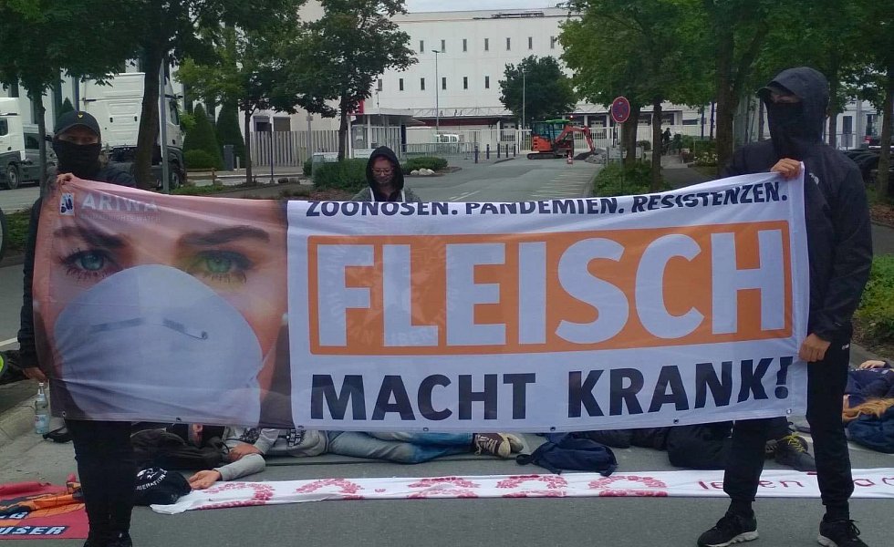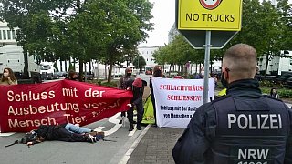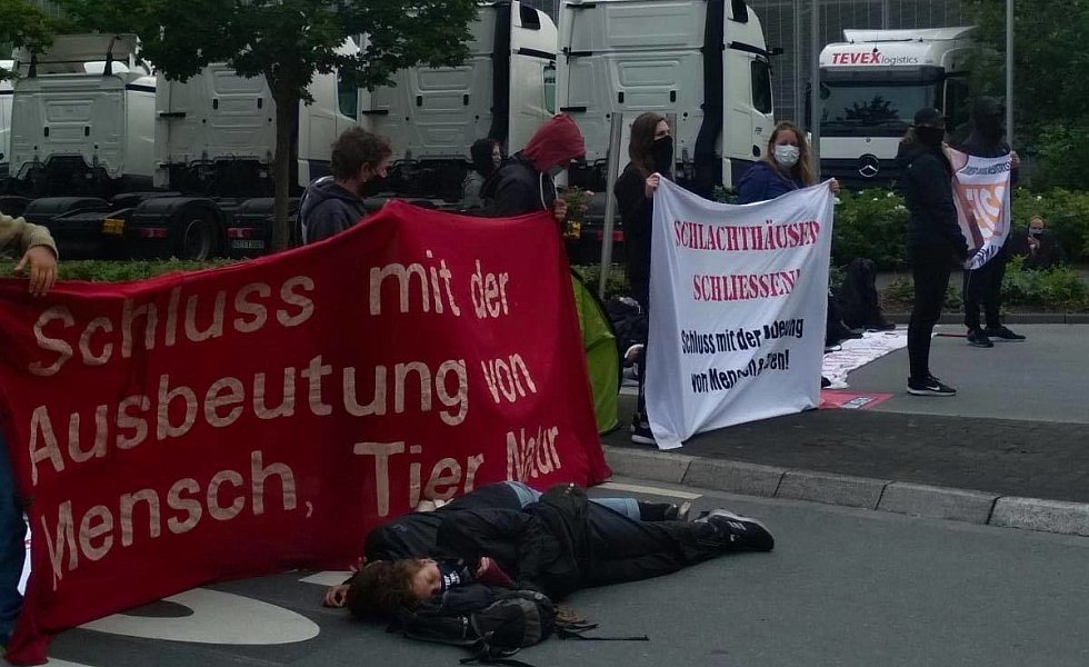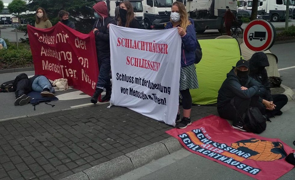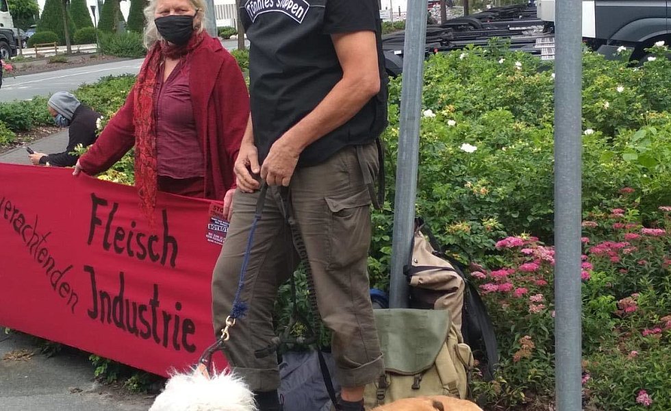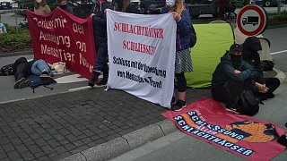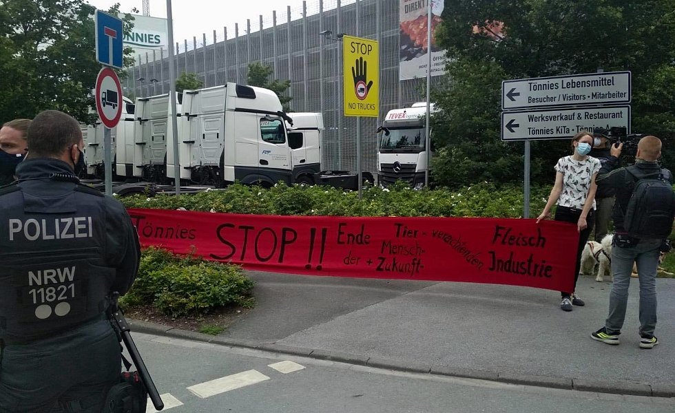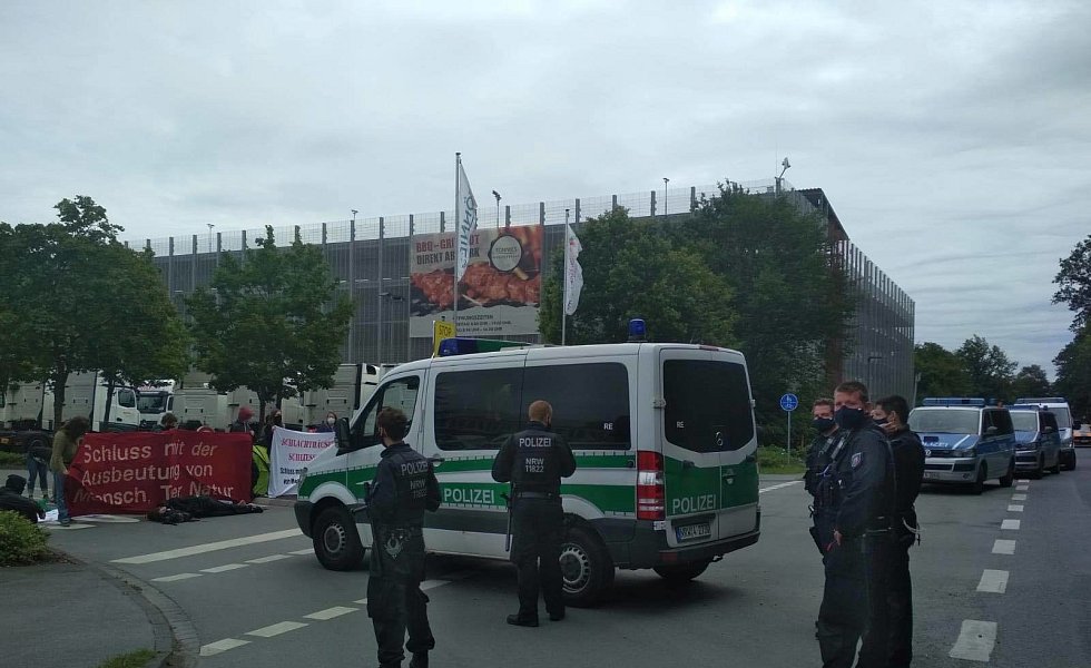 Protest-Aktion am Tönnies-Schlachthof in Rheda-Wiedenbrück