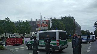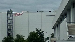 Aktivisten vom "Bündnis Gemeinsam gegen die Tierindustrie" haben ein Dach der Firma Tönnies in Rheda-Wiedenbrück besetzt.