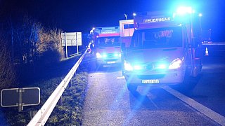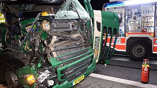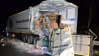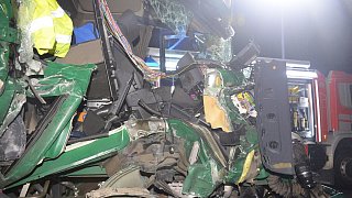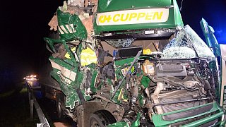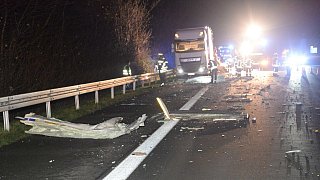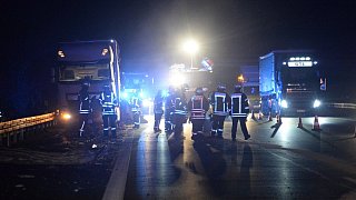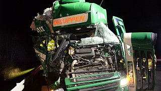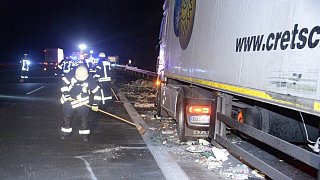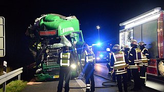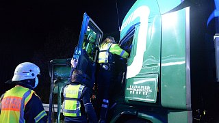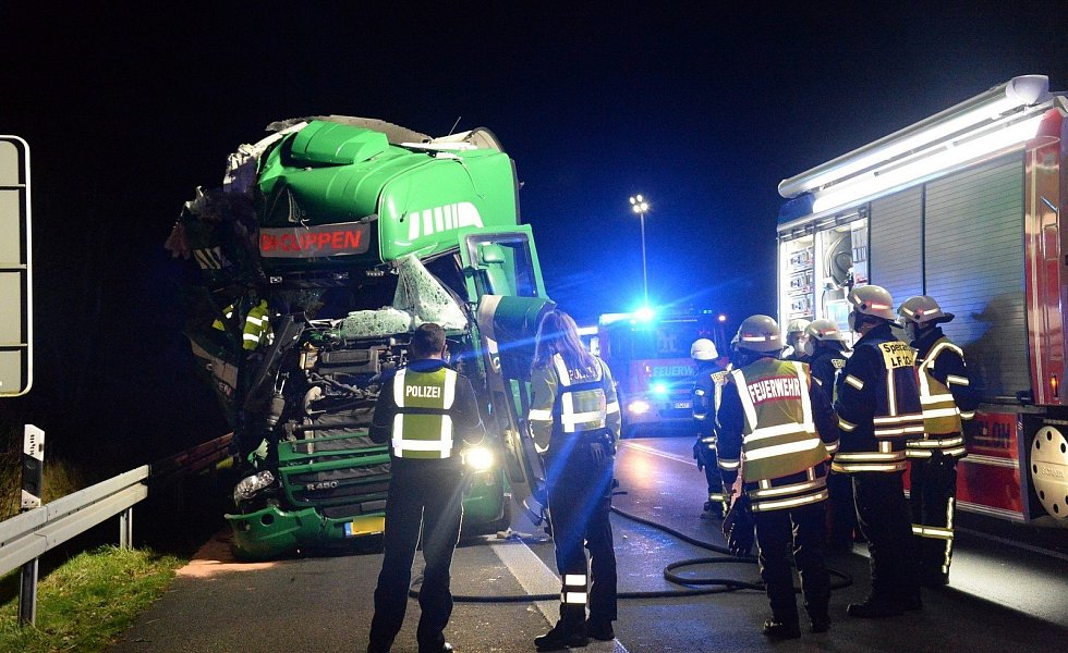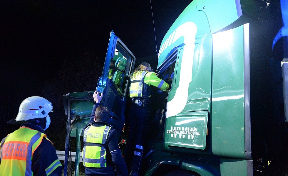 Ein Lkw-Fahrer wird bei einem Unfall in der Nacht schwer verletzt - sein Sohn ebenfalls. Er schlief in der Fahrerkabine.