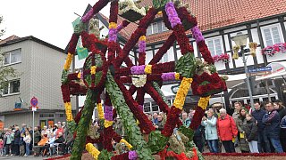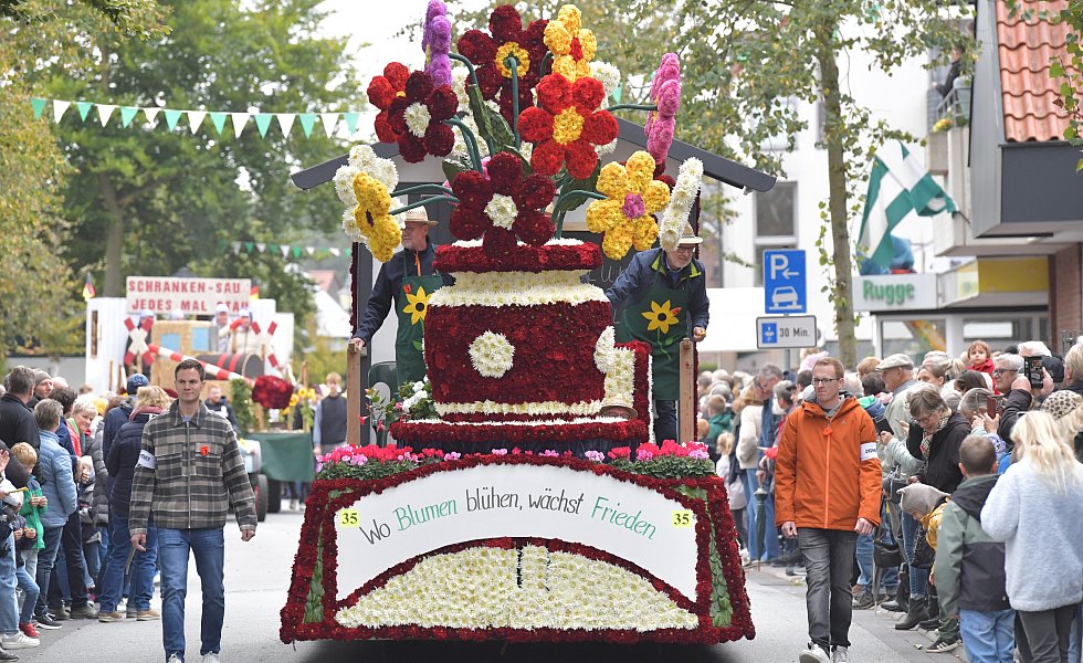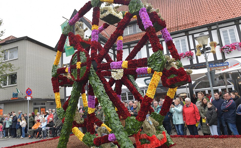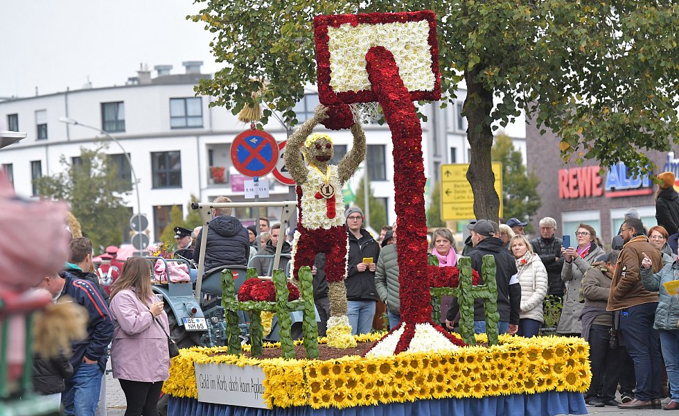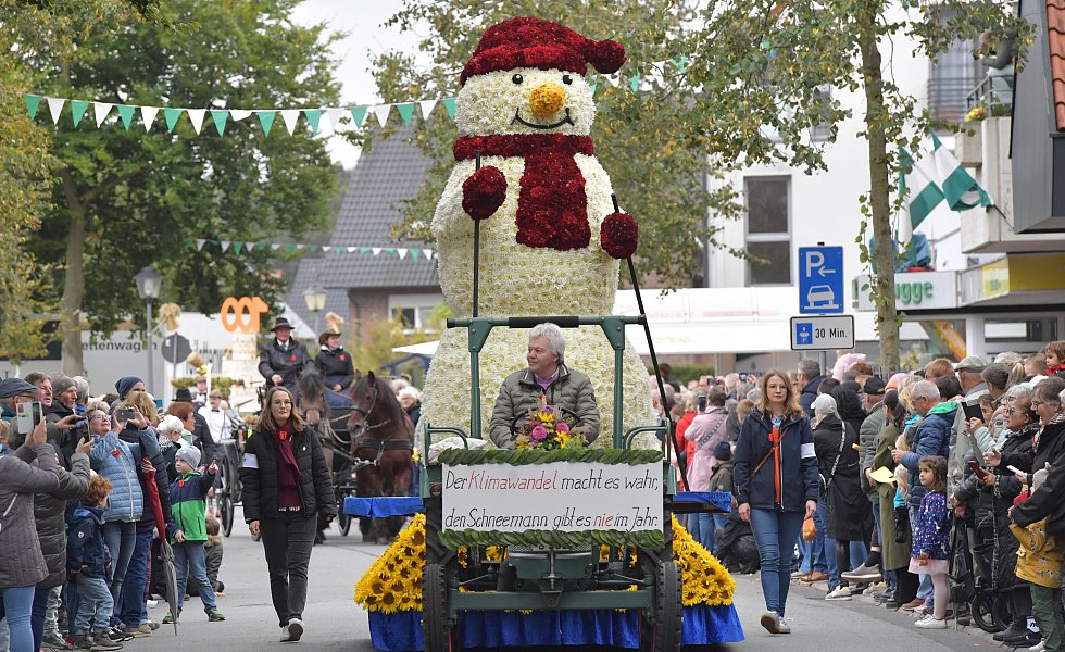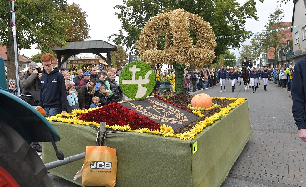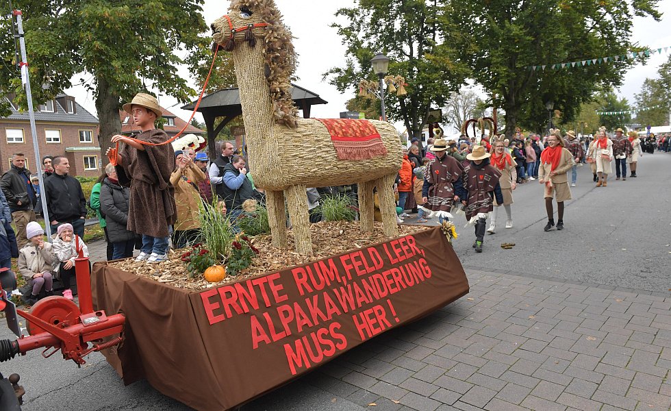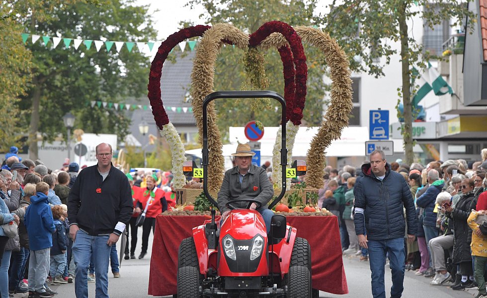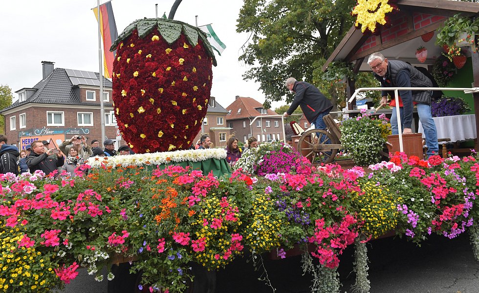 Auch in diesem Jahr bestaunen tausende Besucher die aufwendig gestalteten Wagen in Herzebrock-Clarholz beim Erntedankfestumzug.