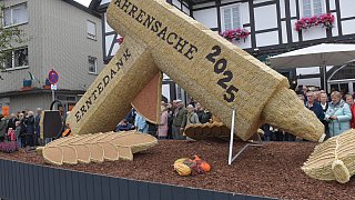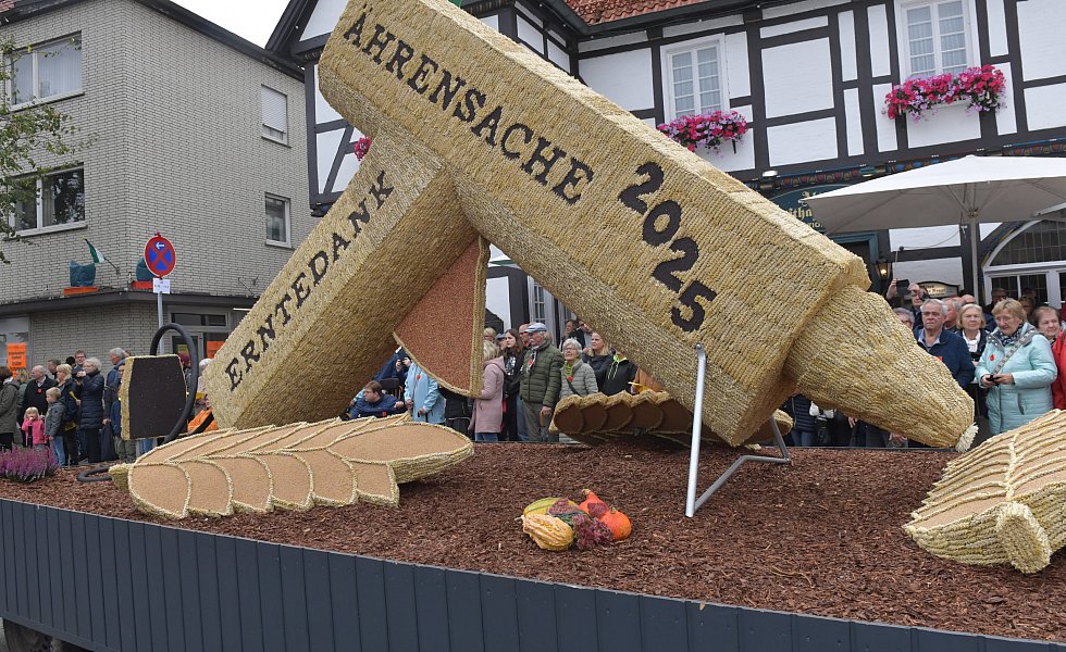 Erntedank als "Ährensache", geformt 28.125 Ähren in Spritzpistole-Figur waren absoluter Rekord in diesem Jahr.
