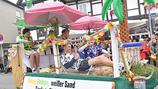 Auch das berühmte Komiker-Duo Stan Laurel und Oliver Hardy alias "Dick und Doof" durfte im Umzug nicht fehlen.