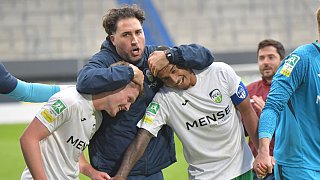 Beim FC Gütersloh herrscht große Freude über den Sieg in Paderborn und die Eroberung der Tabellenspitze.