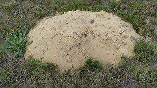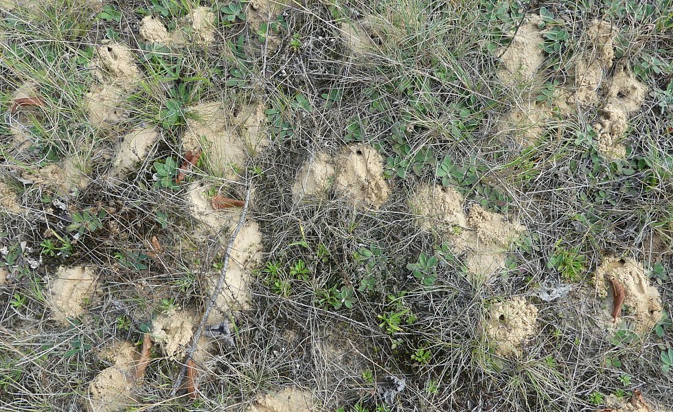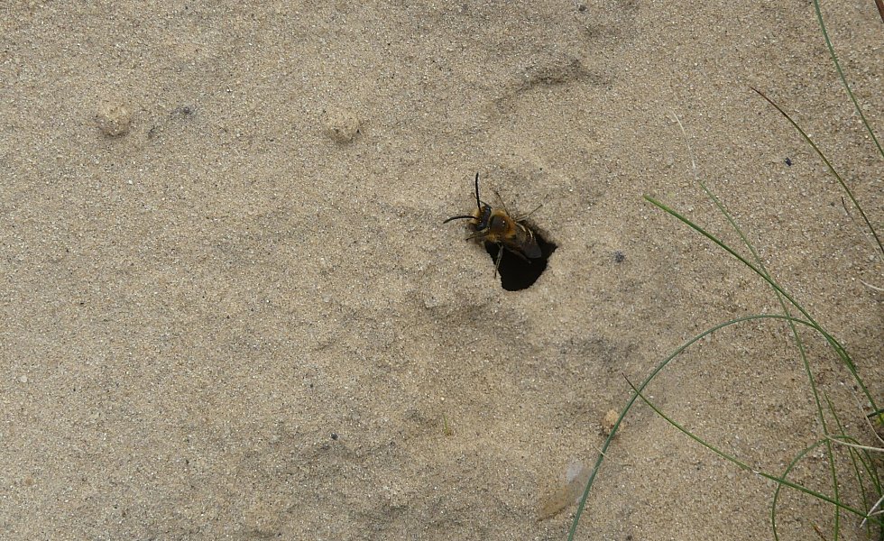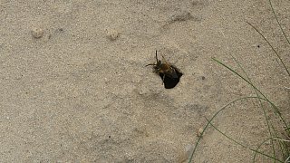 Viele kleinere und auch größere Haufen aus hellem Sand ziehen die Aufmerksamkeit der Spaziergänger im Hühnermoor in Marienfeld auf sich. Am Rand des Moors, dem letzten seiner Art im Kreis Gütersloh, haben sich seitlich des südlichen Rundweges Sandbienen eingenistet. Es wimmelt nur so von den auch als Erdbienen bekannten Insekten.
