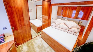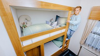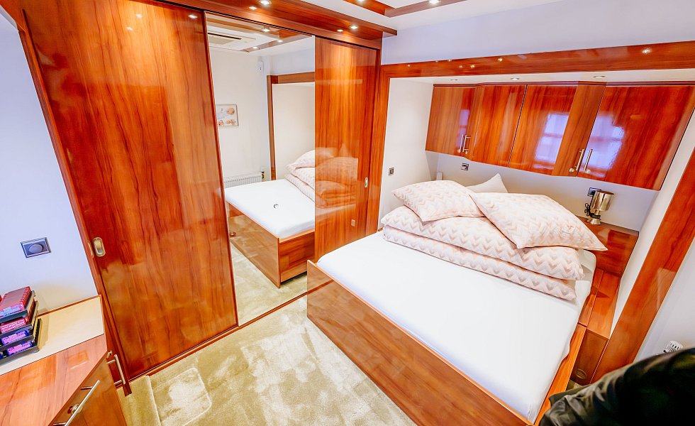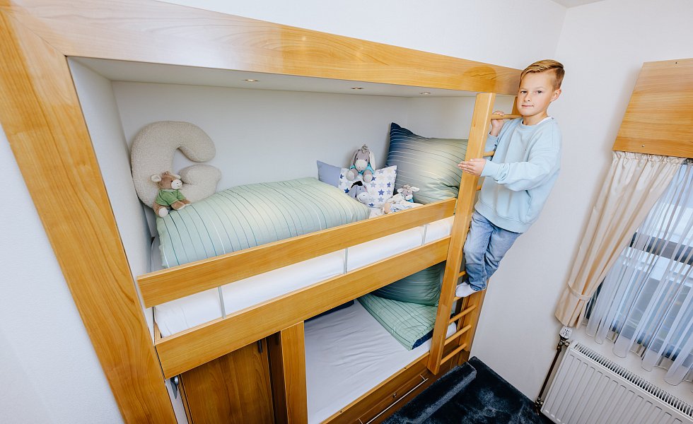 Das Schlafzimmer der Eltern. Insgesamt misst der Luxus-Wohnwagen der Weltes knapp 70 Quadratmeter.