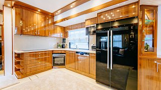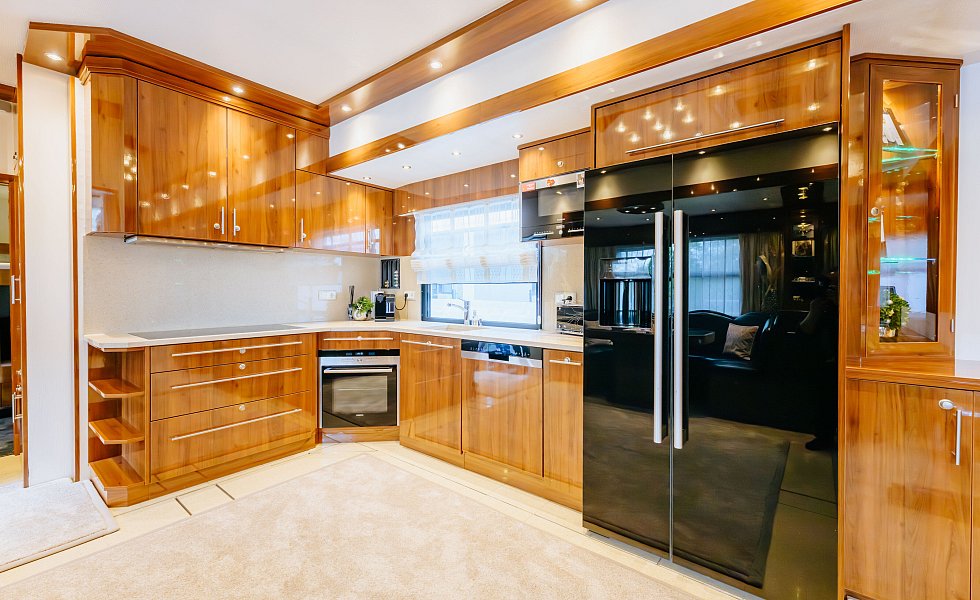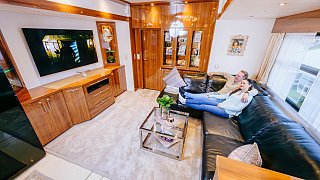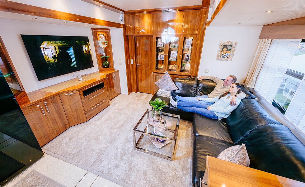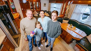 Der Luxus-Wohnwagen der Familie Welte wurde extra für sie gebaut. Ausgefahren ist er 15 Meter lang. Die Wohnfläche beträgt 70 Quadratmeter.