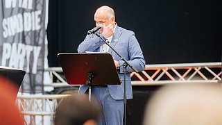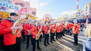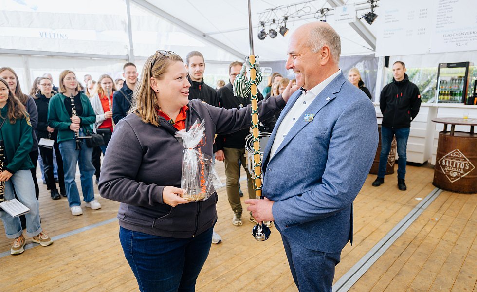 Auf seinm Weg zum Fassanstich wurde Bürgermeister Erichlandwehr musikalisch wie gewohnt vom Städtischen Blasorcheste unterstützt.