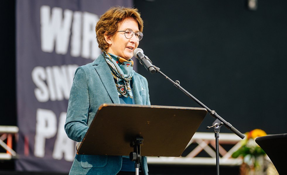 Auch die stellvertretende Vorsitzende des Gütersloher Kreistags richtete am Sonntag bei der Veraschiedung einige Worte an Hubert Erichlandwehr.