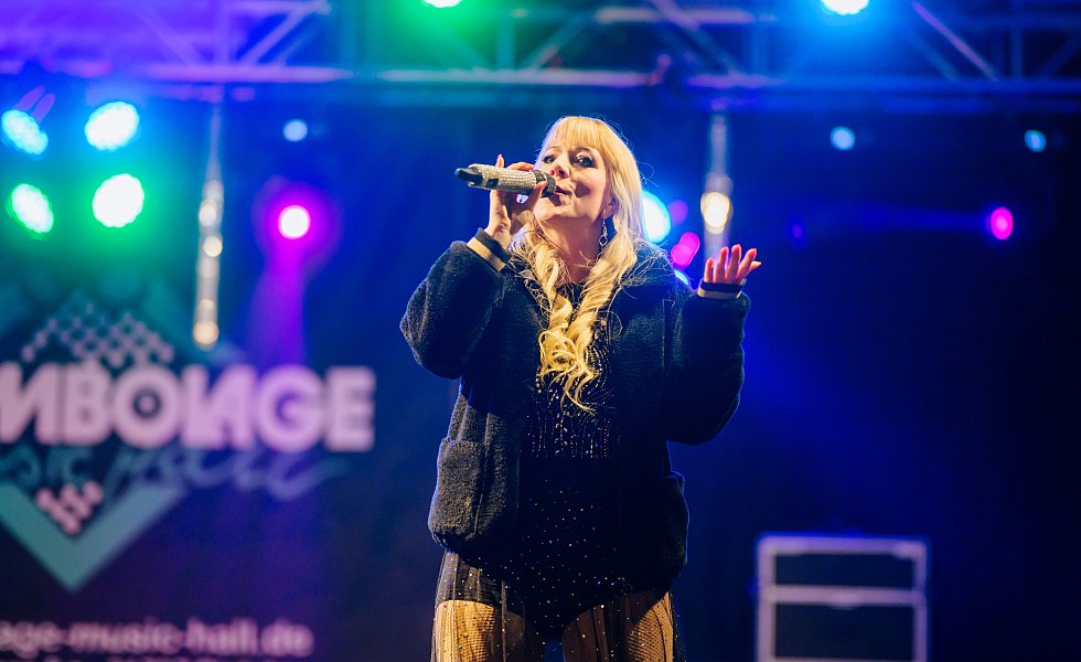 Jennifer Sturm, "der blonde Engel des Schlagers", sorgte am Abend im Pollhans-Wäldchen für mächtig Stimmung.