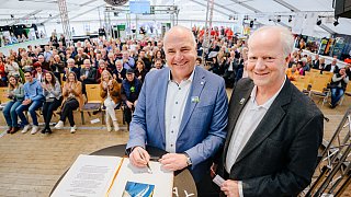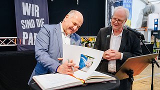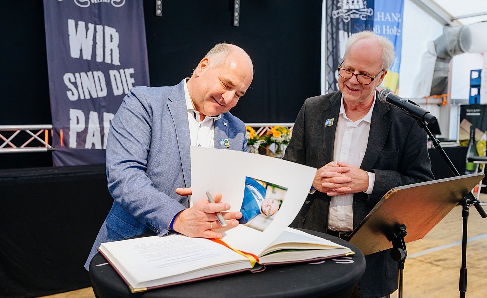 Der "Neue" und der Alte: Natürlich durfte zum Abschied am Sonntagmittag auch ein Eintrag ins Goldene Buch der Stadt Schloß Holte-Stukenbrock nicht fehlen.