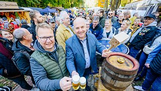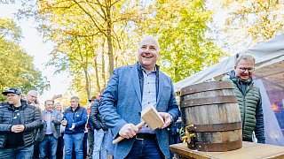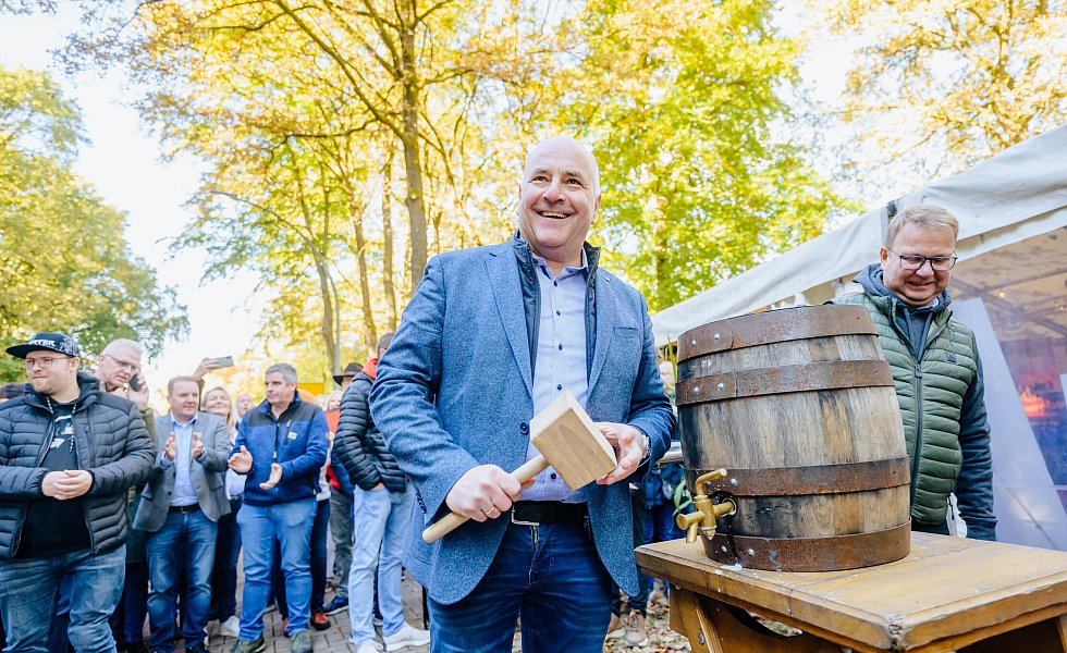 Zum letzten Mal stach Noch-Bürgermeister Hubert Erichlandwehr das Pollhans-Fass an.