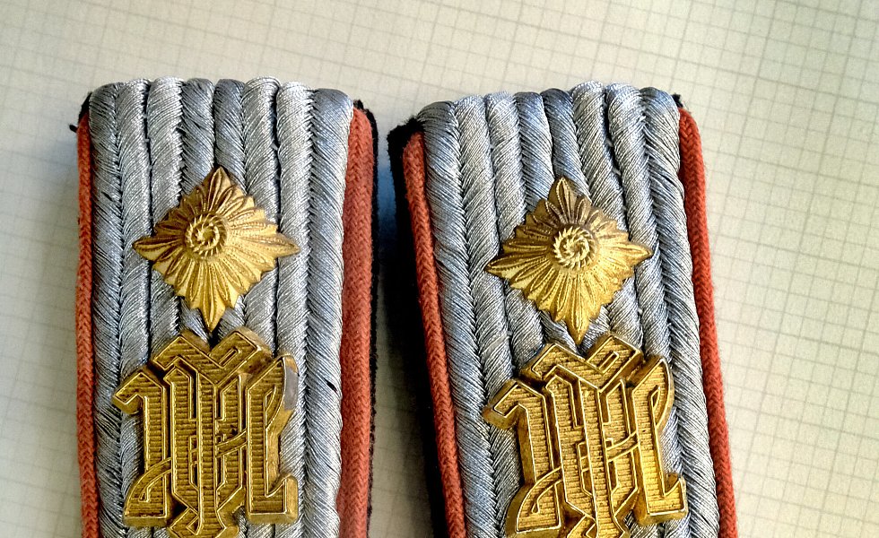 Diese Schulterklappen eines Artillerieoffiziers der Waffen-SS, der Mitglied von Hitlers Leibstandarte war, werden für 400 Euro aufgerufen.