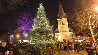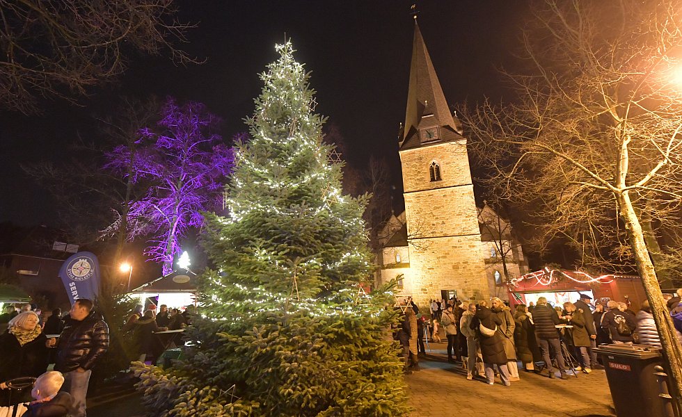 Der Lichterglanz des Isselhorster Weihnachtsmarktes lockte am Wochenende das halbe Kirchspiel auf den Kirchplatz.