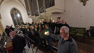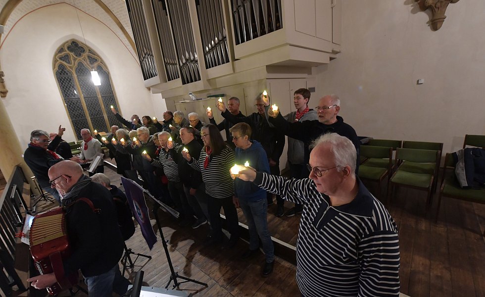 Weil der Altarraum mit der Krippen-Ausstellung belegt war, verlegten die "Luttermöwen" ihren Auftritt auf die Kirchenempore.