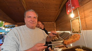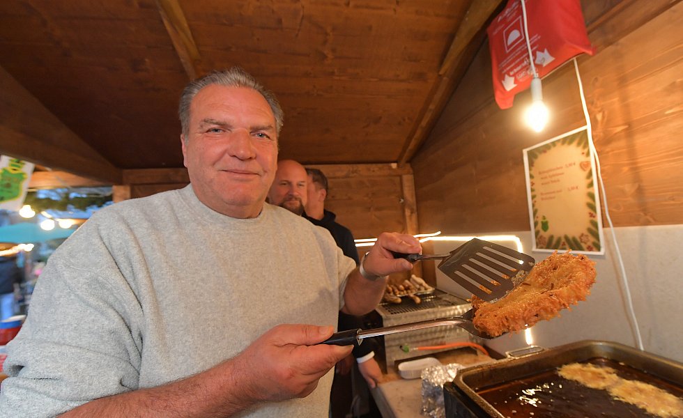 Dirk Altemeier (1. Vorsitzender Kattenstrother Karnevals Club) verkaufte mit seinem Team leckere Kartoffelpuffer.