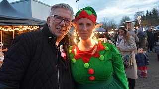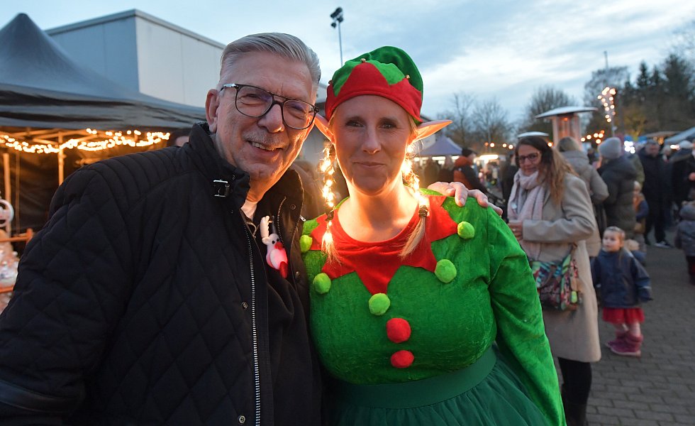 Rainer Straube (1. Vorsitzender Schützenverein Pavenstädt, links) mit Johanna Gallert (Kita-Leiterin "Auf dem Stempel") als Weihnachtselfin.