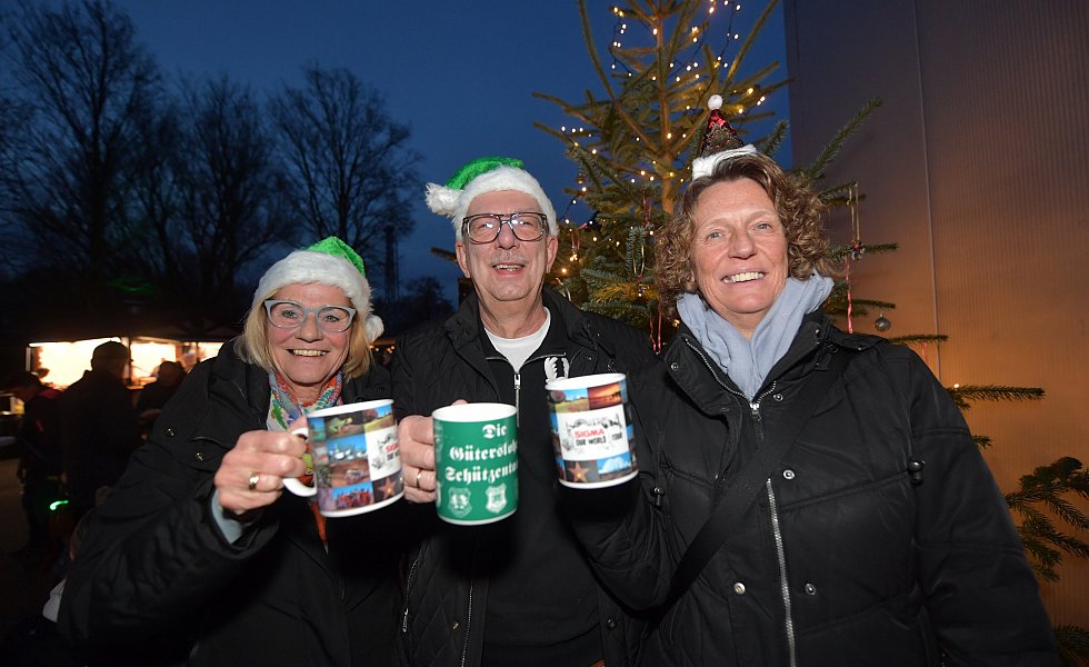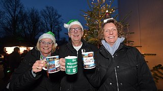 Karin Straube (links), Rainer Straube (1. Vorsitzender Schützenverein Pavenstädt) und Tamara Gilga (Schriftfüherin SV Pavenstädt) stießen auf einen erfolgreichen Pavenstädter Weihnachtsmarkt an.