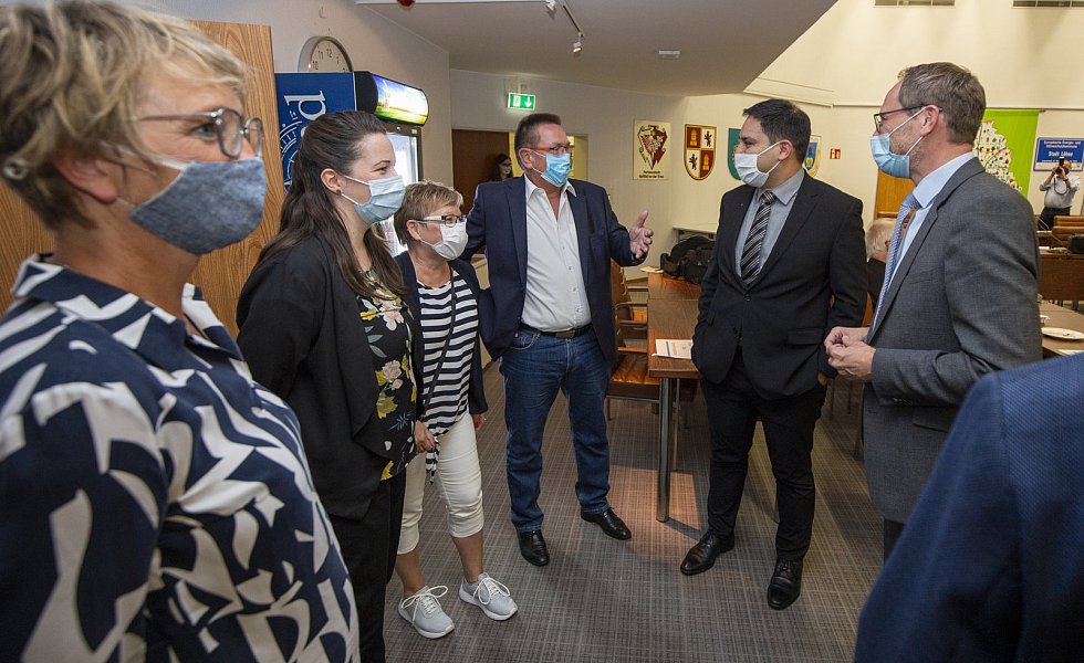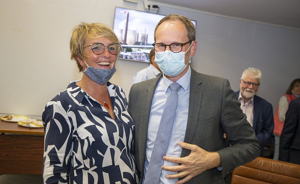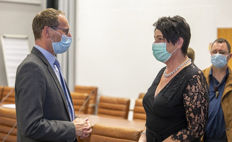 Bürgermeister Bernd Poggemöller im Gespräch mit Silke Glander-Wehmeier.