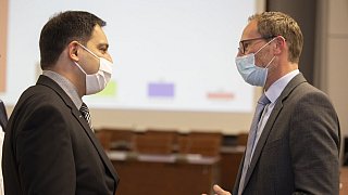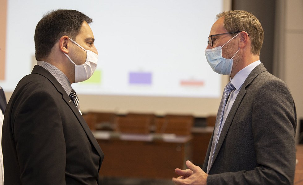 Borzoo Afshar (CDU) gratuliert Bernd Poggemöller (SPD).