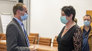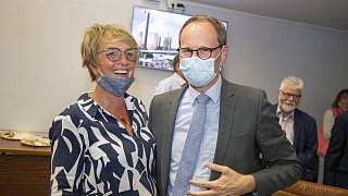 Bernd Poggemöller bleibt Bürgermeister von Löhne. Ehefrau Ulrike ist die erste Gratulantin.