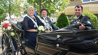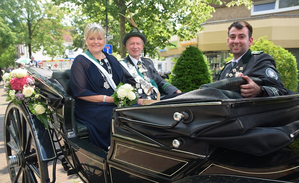 Am Sonntag hatte es einen großen Festumzug durch die Innenstadt gegeben. Schützenkönig Jürgen Uppenbrock und Königin Cordula Althoff waren - begleitet von Stallmeister Marvin Bauer - in der Kutsche dabei.