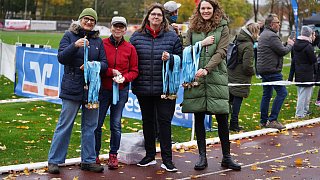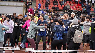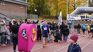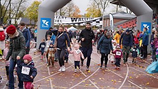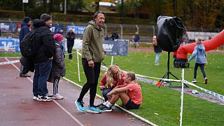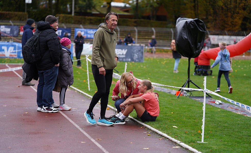 Familiensache: Jette ist gerade vom Schülerlauf im Ziel und wird von Kerstin versorgt. Papa Kai startet später über die 10 Kilometer