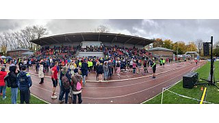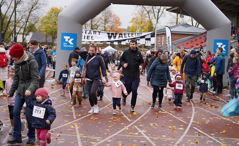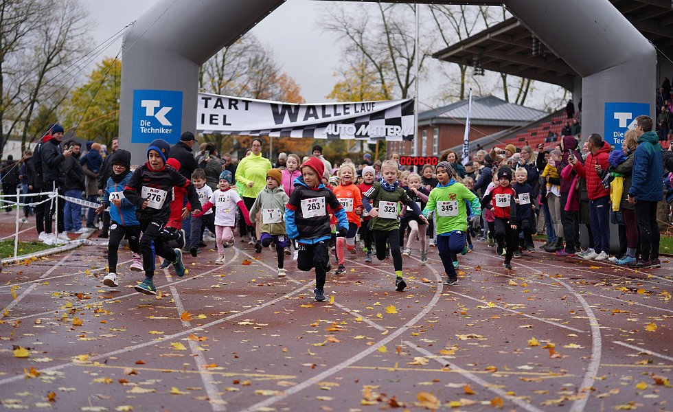 Mit Vollgas: Die Bambinis stürmen los und rennen zwei Stadionrunden.