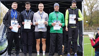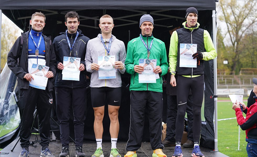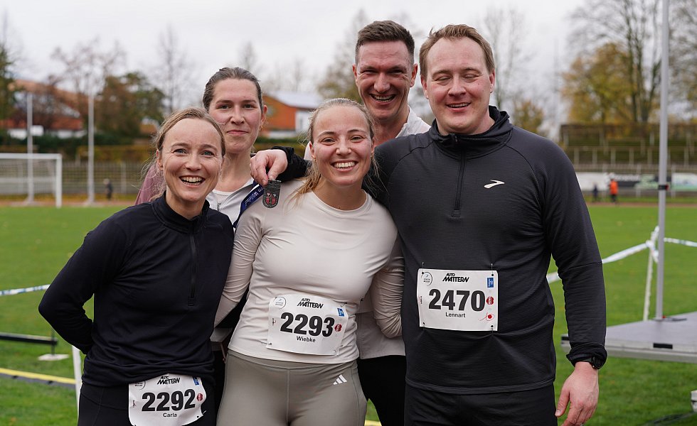 Die Sieger des 10 Kilometer Auto Mattern Wälle Laufs (v.r.): Jan Nikulla (AÜG Netzwerk), Gabriel Bertolinis, Frederik Galling, Elias Denzel, Jonas Hellmeier.