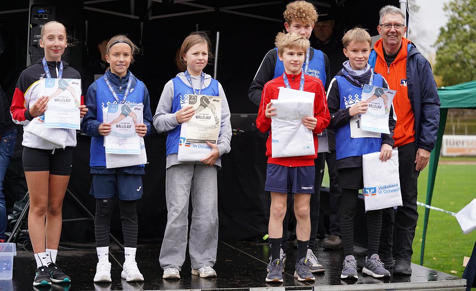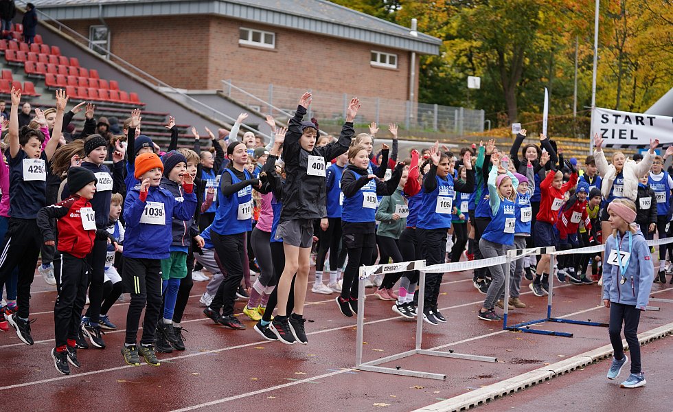 Leichter Nieselregen hielt die Schülerinnen und Schüler nicht auf. Gut aufgewärmt starteten sie auf die Strecke