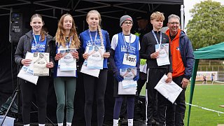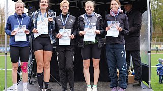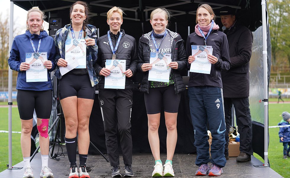 Strahlende Siegerinnen nach zwei Wallrunden: Reikja Krase (TV Löhne-Bahnhof, v.r.), Michelle Klempt, Steganie Snelting, Lauta Schmidt und Laura Sander.
