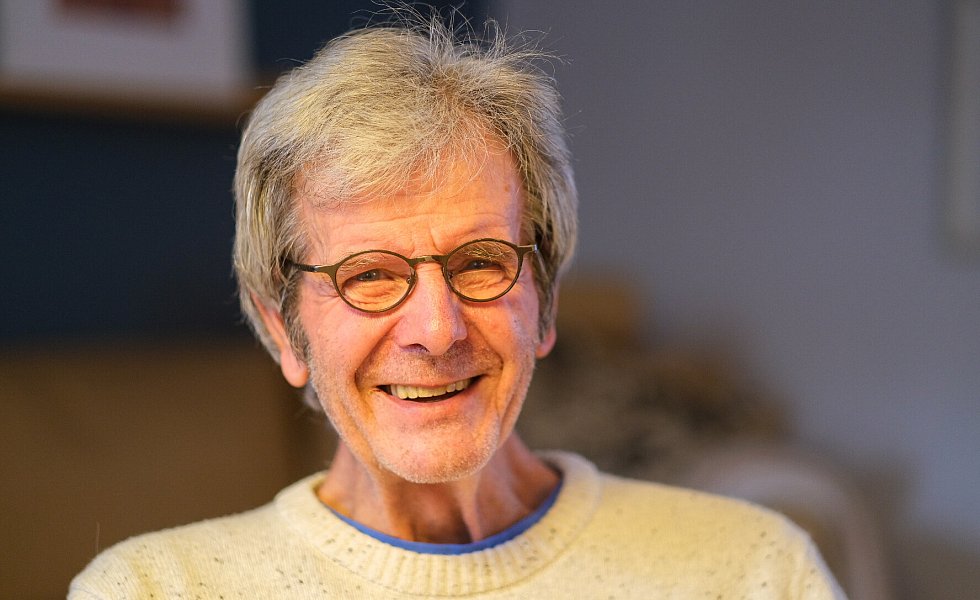 Dieter Begemann sitzt auf seinem Easy Rider und schaut aufs Wasser.