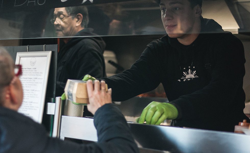 Gaumenfreuden: Deftige Leckerbissen gab es am Foodtruck 3 Stars von Marc Gonzaga (nicht im Bild), der passend zum Event einen "Lensdorf Star" und einen "Schrader Star" mit 100 Prozent regionalem Beef Patty, sowie Blattspinat, Spiegelei und unter anderem gegrillter Ananas anbot.