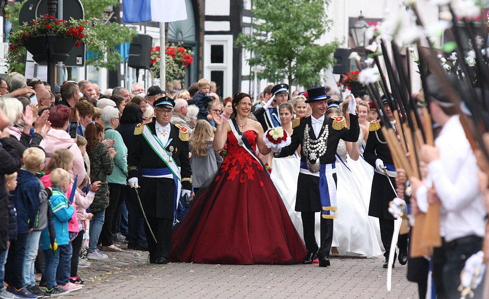 Nach dem gelungenen Festball am Samstagabend folgte am Sonntag die prunkvolle Parade und der Generalmarsch durch die Stadt mit Schützenkönig Markus Billeb und Schützenkönigin Sarah Marx.