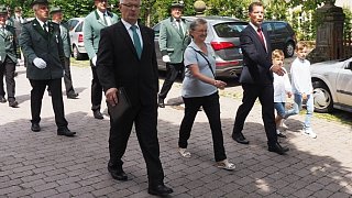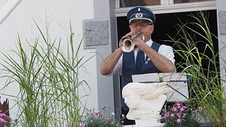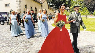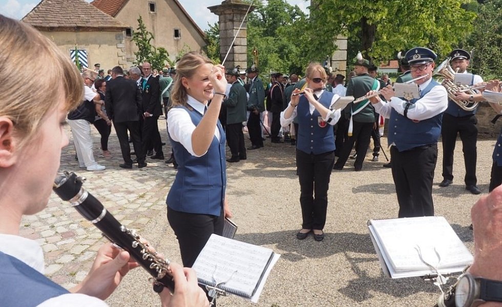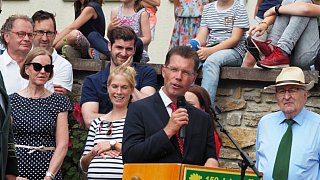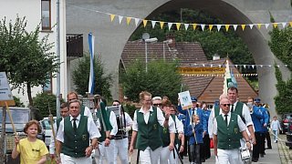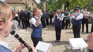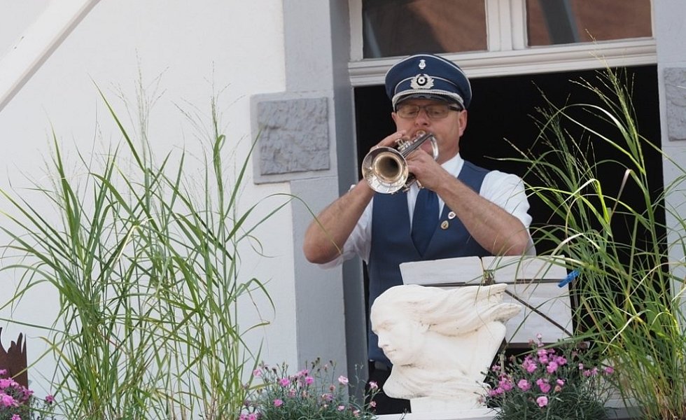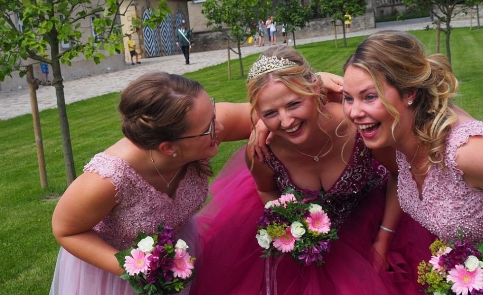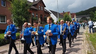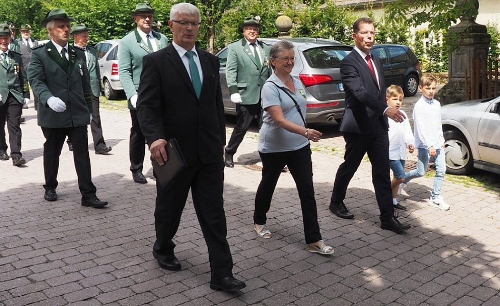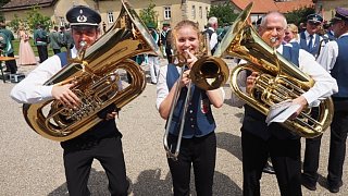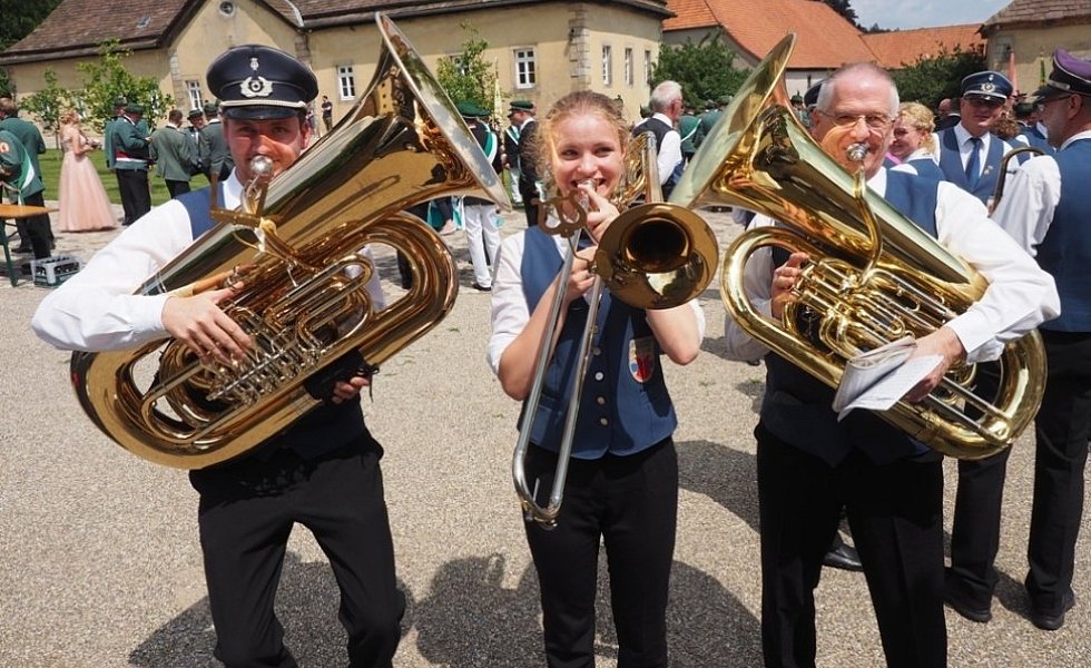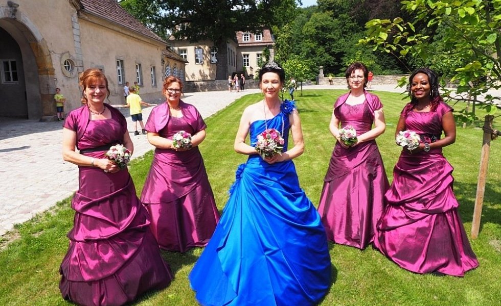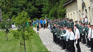 Umringt von den Königspaaren der Nieheimer Ortschaften präsentierte sich der Thron des Gastgebers mit Konrad Rolf (v. l.), Peter Süper, Lydia Rolf-Becker, Ulrike Kleine, dem Königspaar Renate und Martin Gerling, Hildegard Lohr, Steffi Rolf sowie Heike und Stephan Papenkordt.