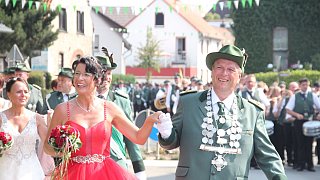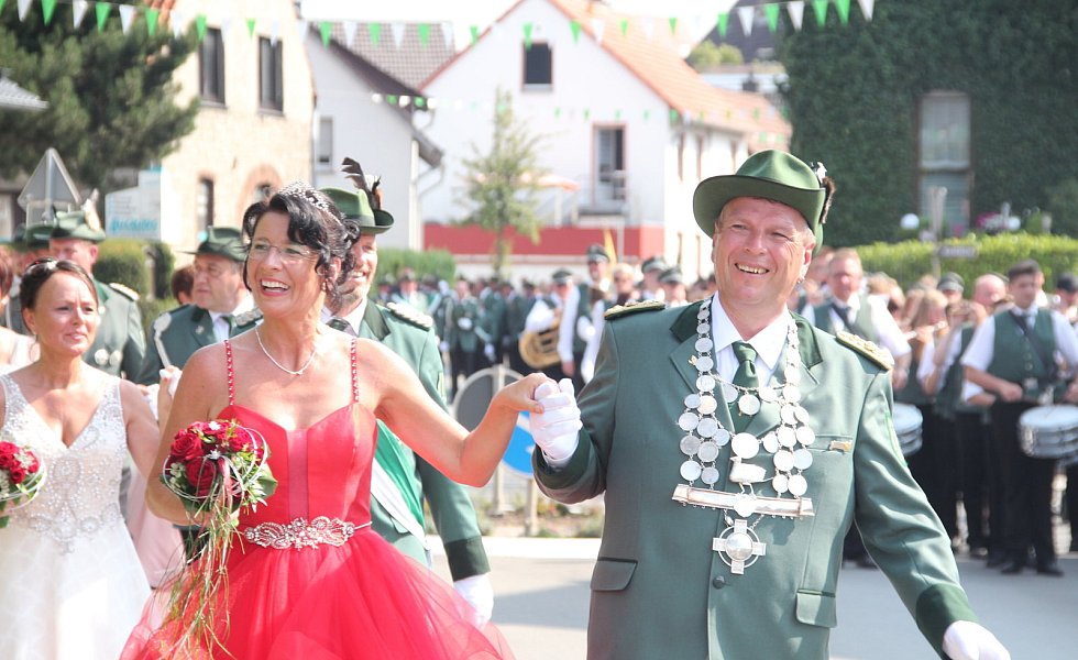 Strahlendes Königspaar: Peter und Monika Müller regieren die Bergheimer St.-Sebastianus-Bruderschaft und werden vom Schützenvolk bejubelt.