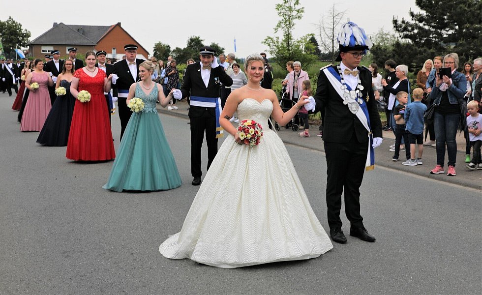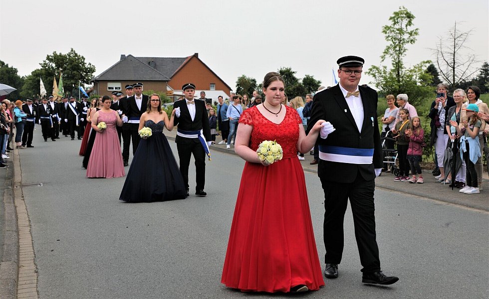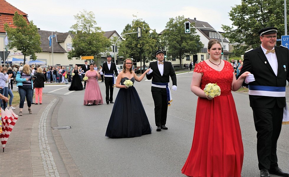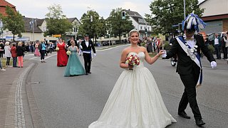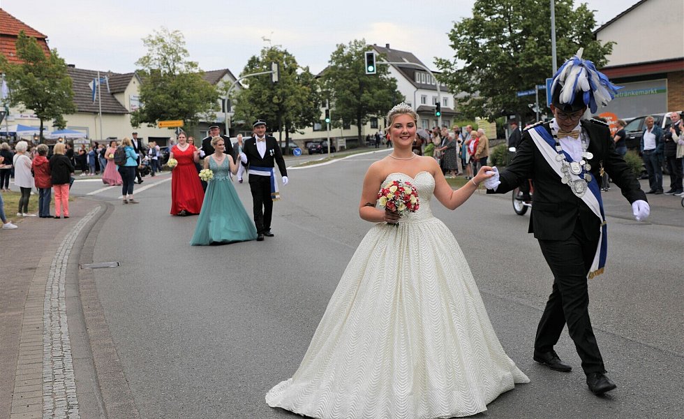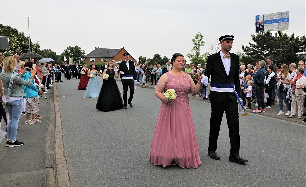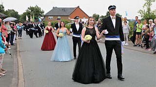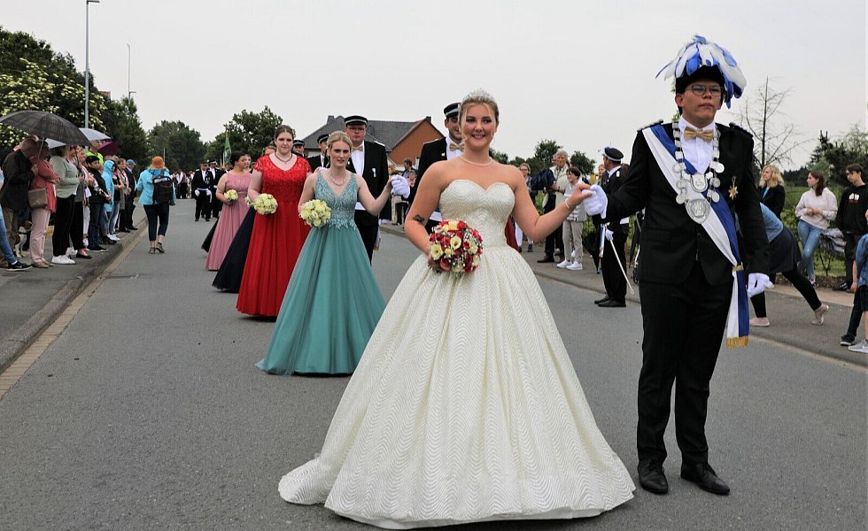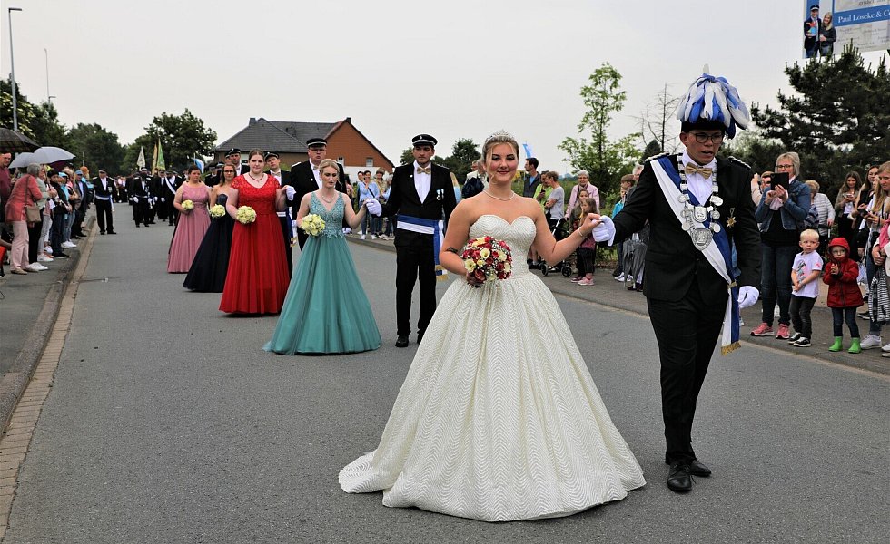 Das junge Königspaar Celine Wolf und Paul Löselke stand mit seinemHofstaat im Mittelpunkt und bekam viel Beifall.