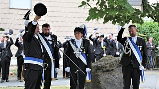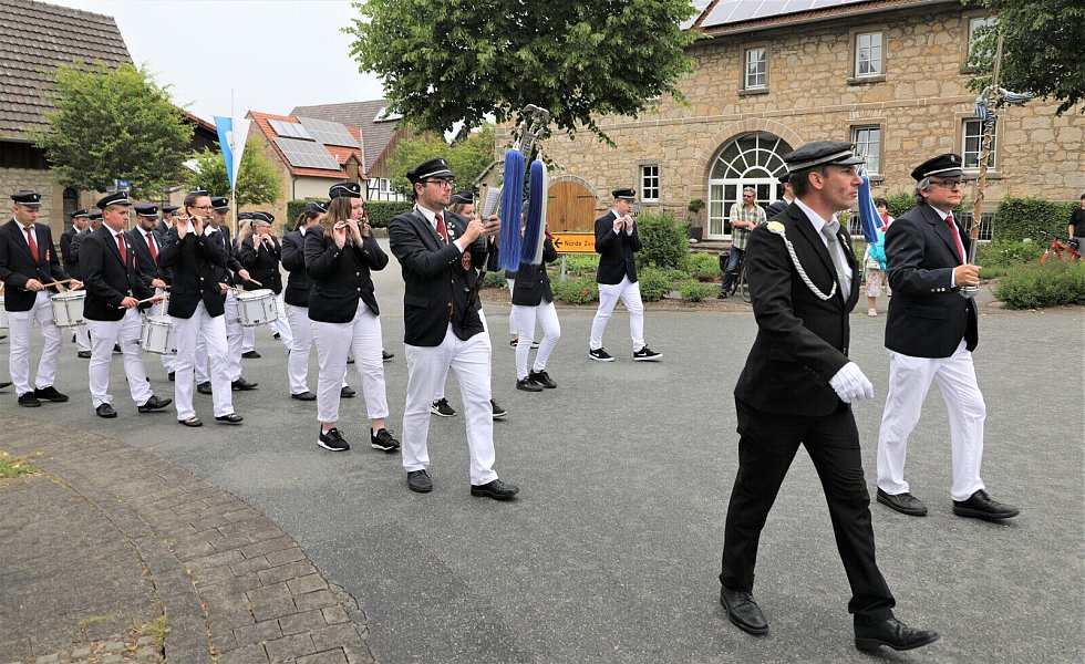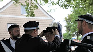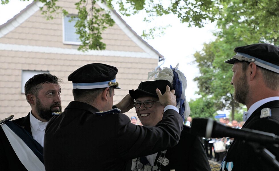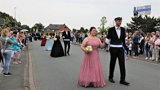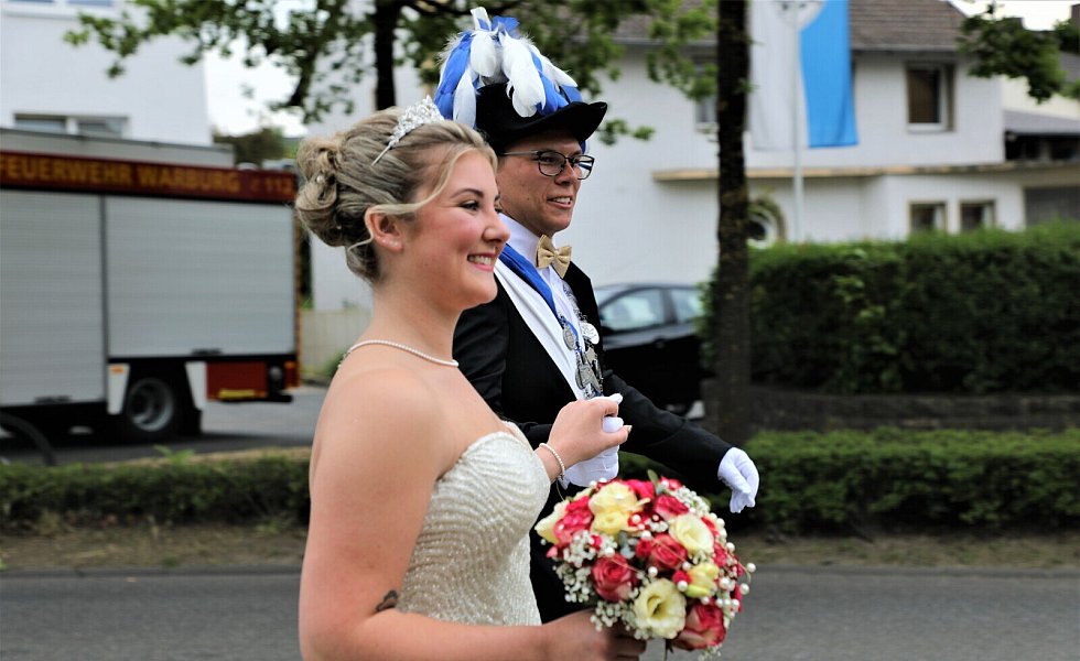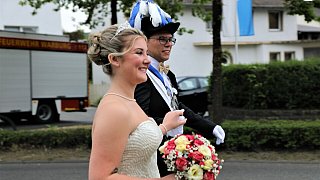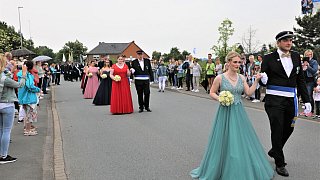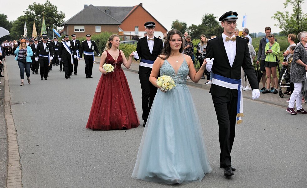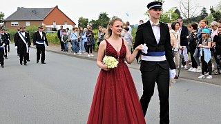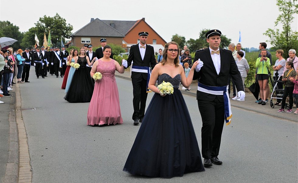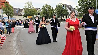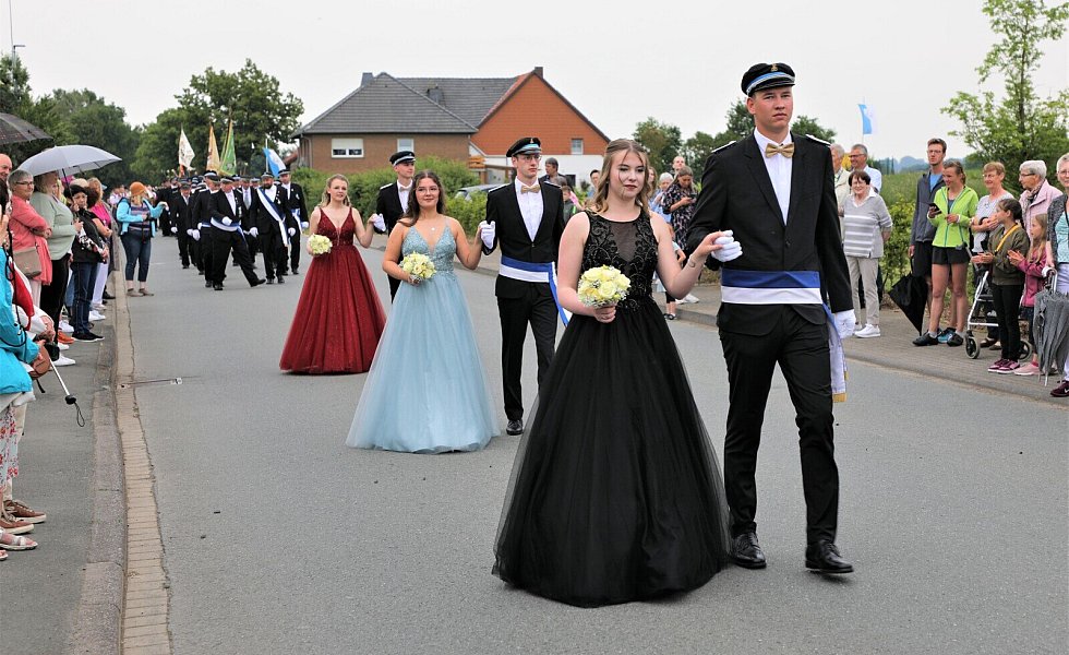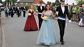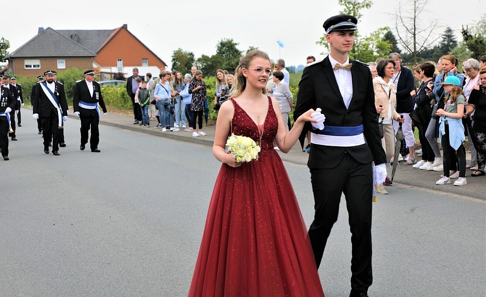Das junge Königspaar Celine Wolf und Paul Löselke stand mit seinemHofstaat im Mittelpunkt und bekam viel Beifall.