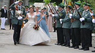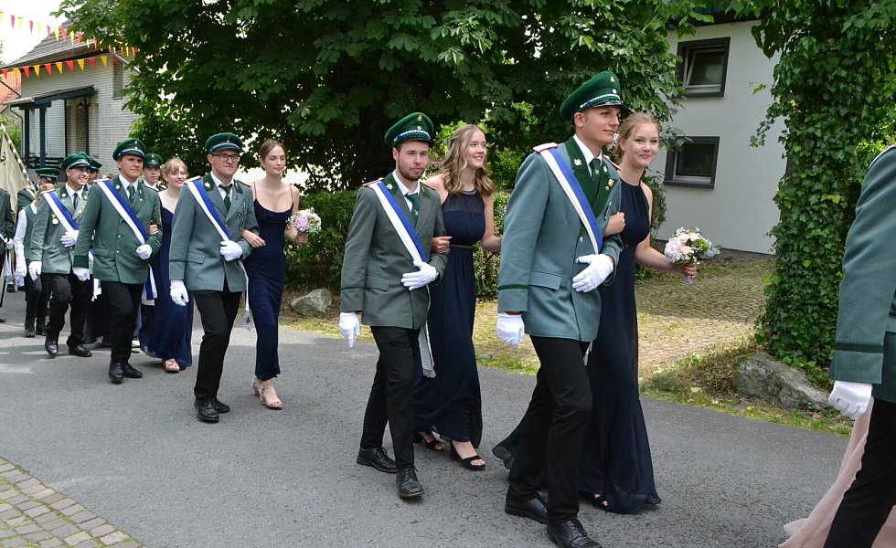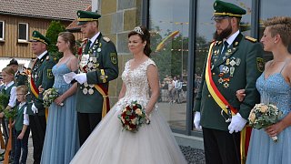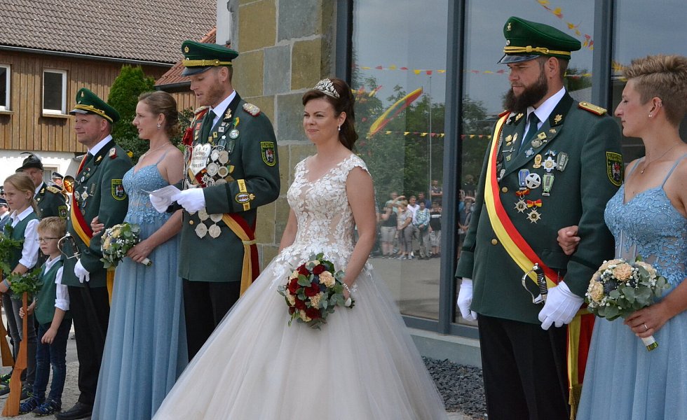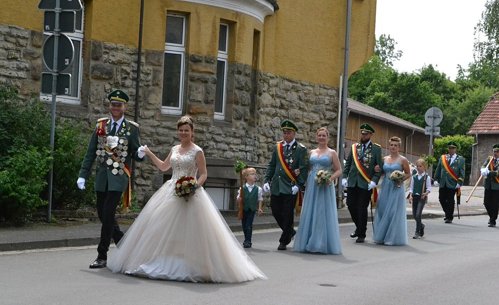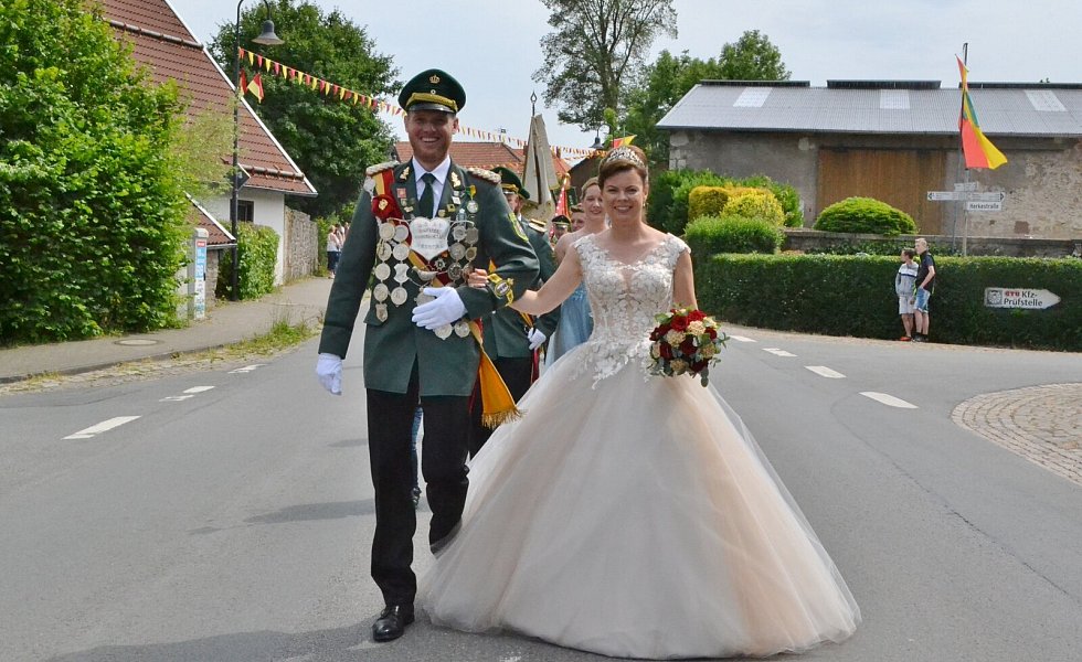 Die Majestäten der Reelser Schützenbruderschaft Michael und Daniela Pöhler und ihr Hofstaat wurden bei den Festumzügen mit Jubel und Applaus empfangen.