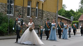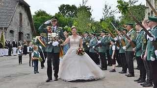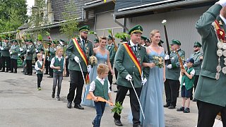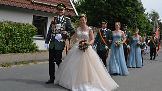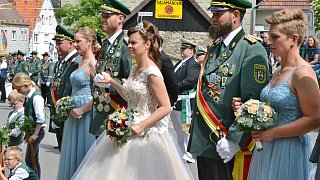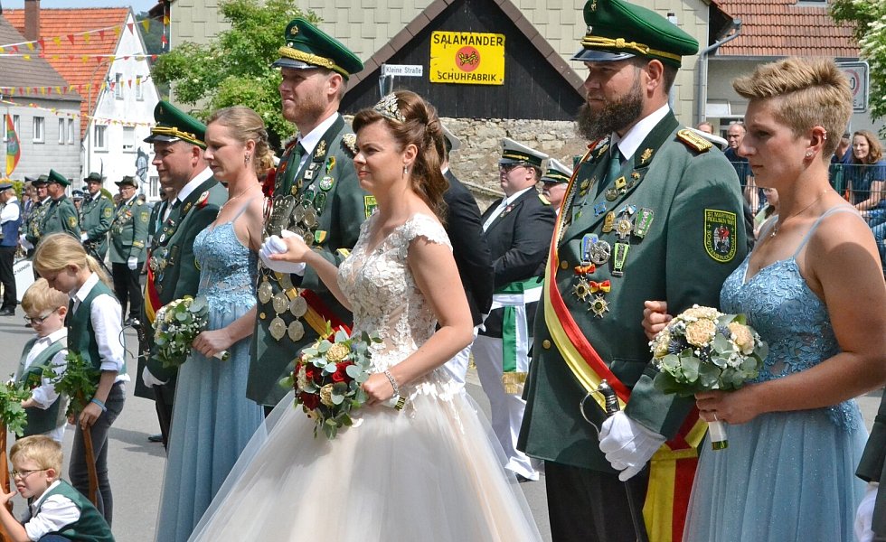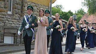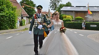 Die Majestäten der Reelser Schützenbruderschaft Michael und Daniela Pöhler und ihr Hofstaat wurden bei den Festumzügen mit Jubel und Applaus empfangen. Foto: Silke Riethmüller