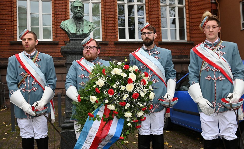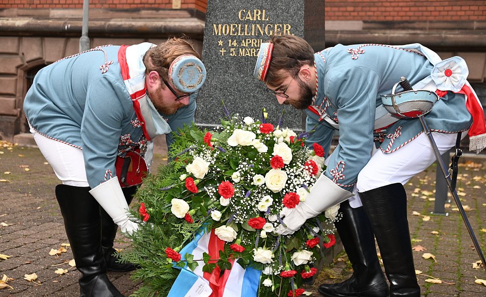 Am Denkmal von Carl Möllinger in Höxter wird ein Kranz niedergelegt.