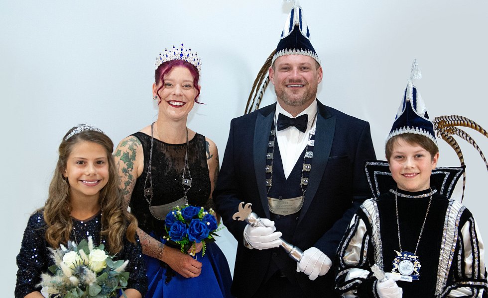 Carena Zarnitz und Florian Kastens (M.) aus Beverungen sind das Prinzenpaar in der 50. Session des Carnevalsverein Weserbrücke. Das Kinderprinzenpaar bilden Johanna Kleinschmidt und Till Marx aus Würgassen.
