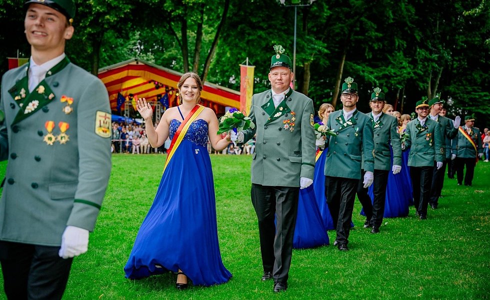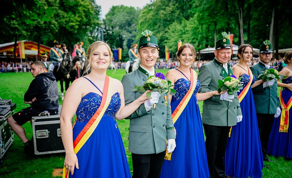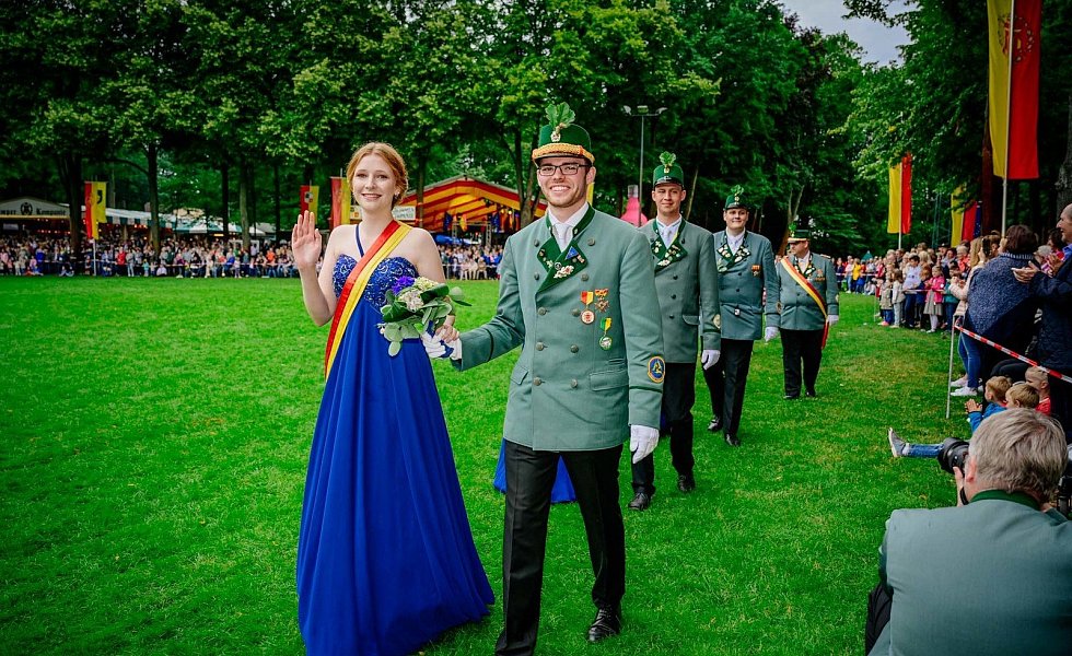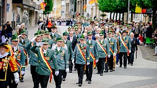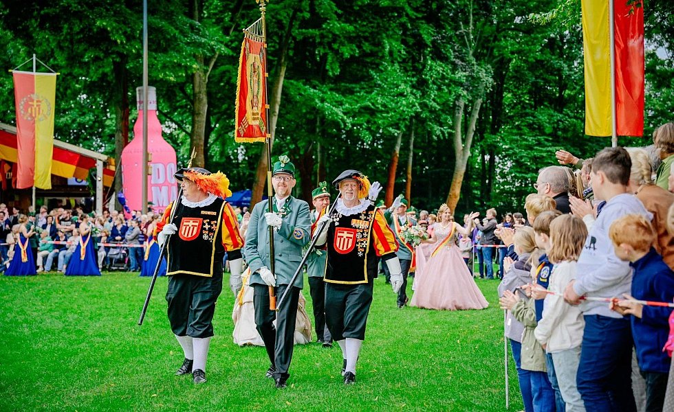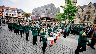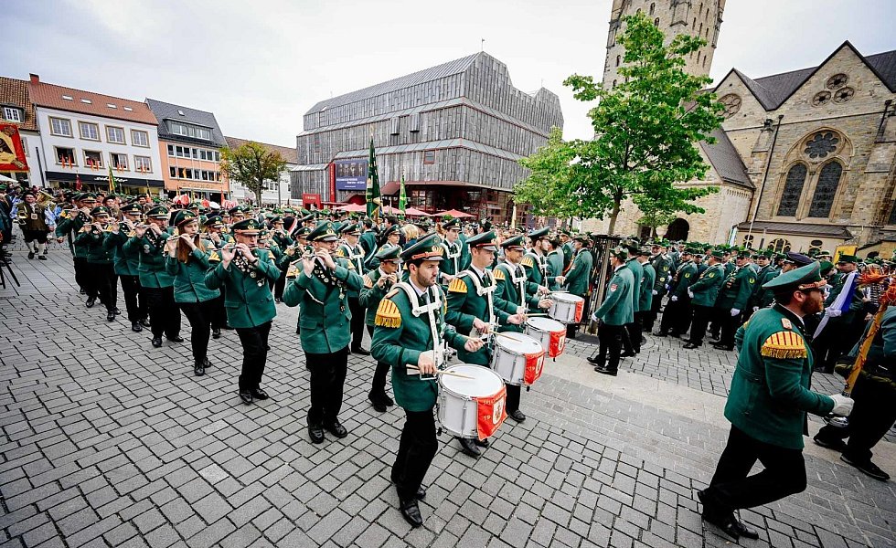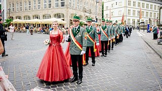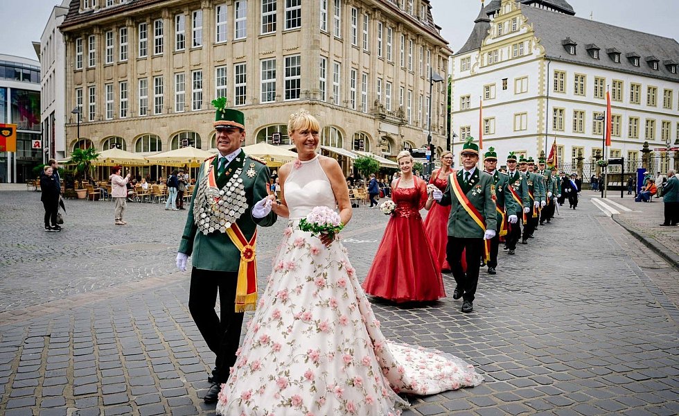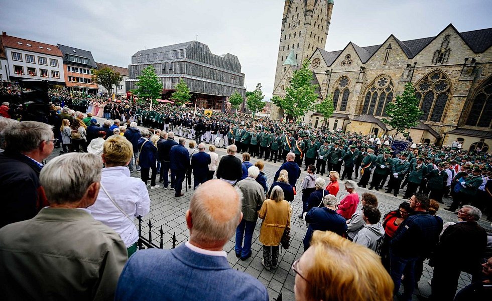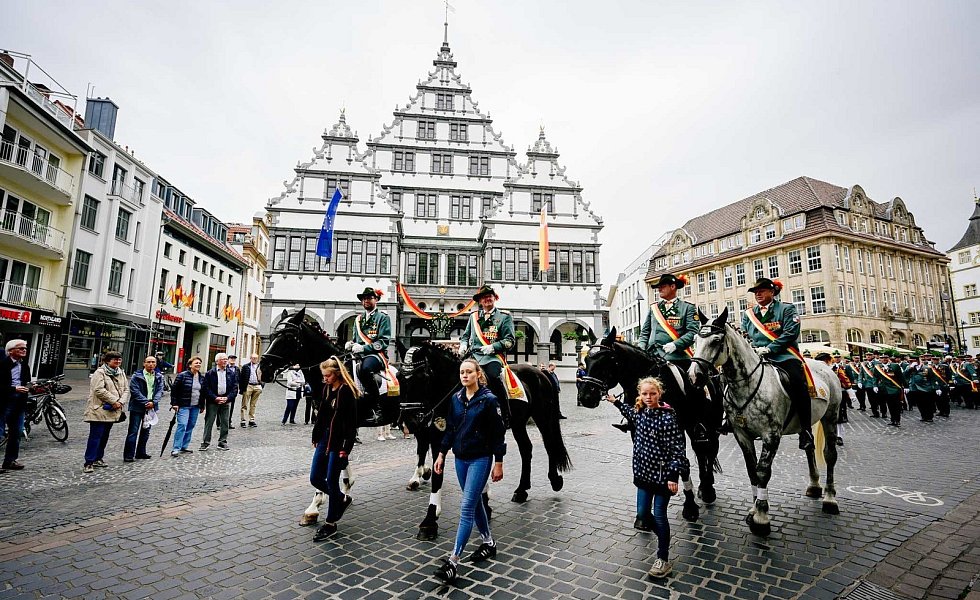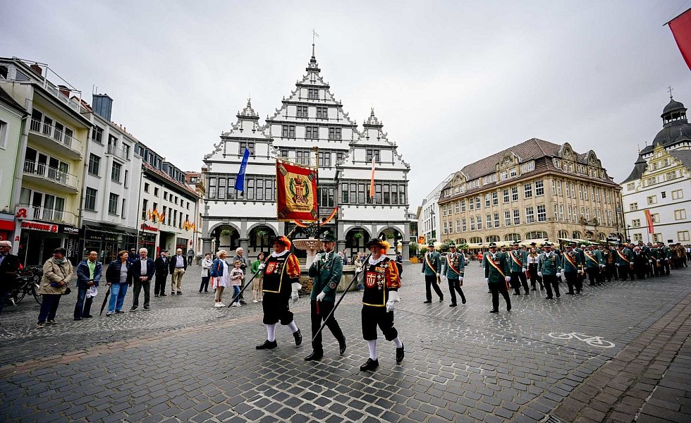 Der Paderborner Bürger-Schützenverein feiert sein 162. Schützenfest mit einem großen Festumzug durch die Innenstadt und der Parade auf dem Schützenplatz.