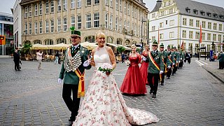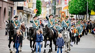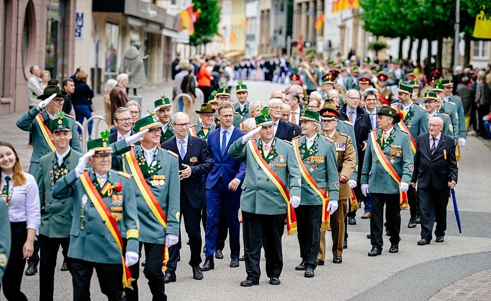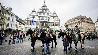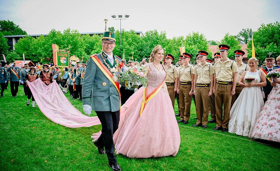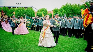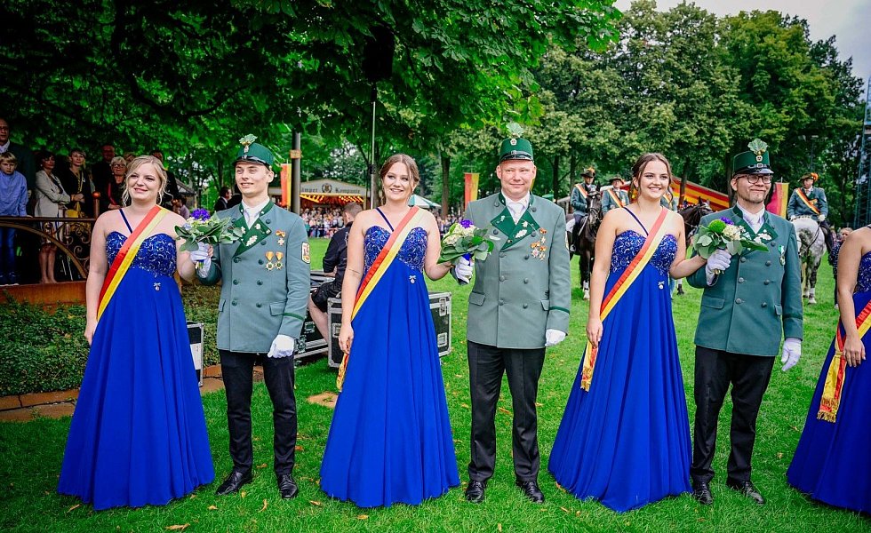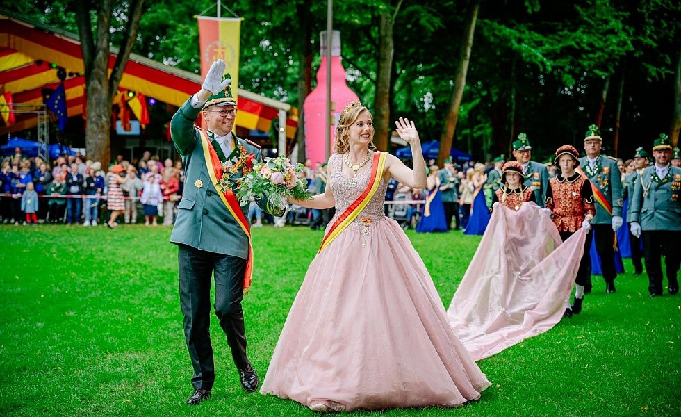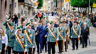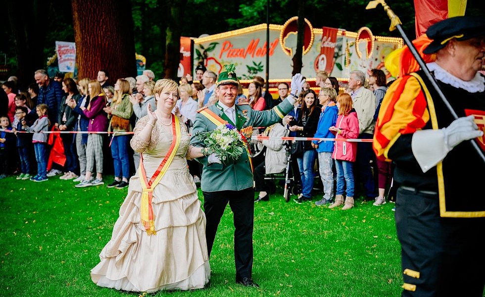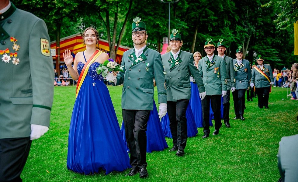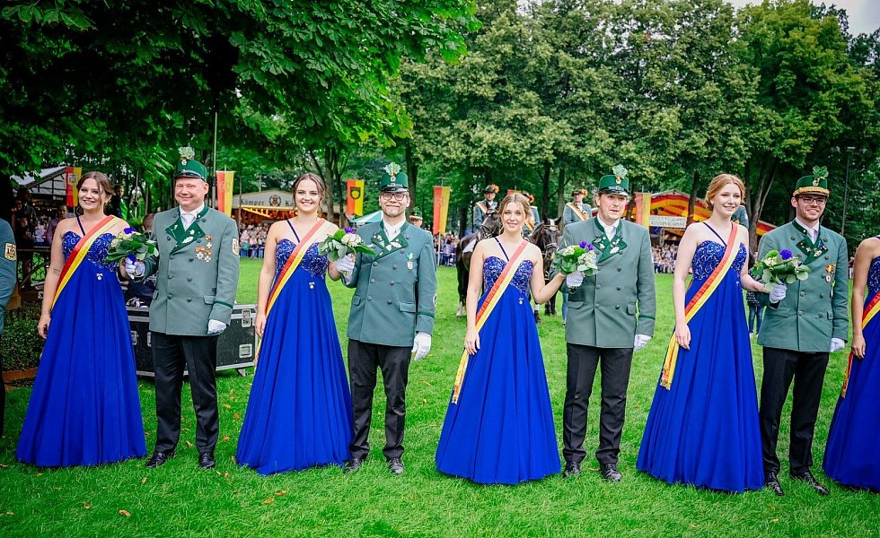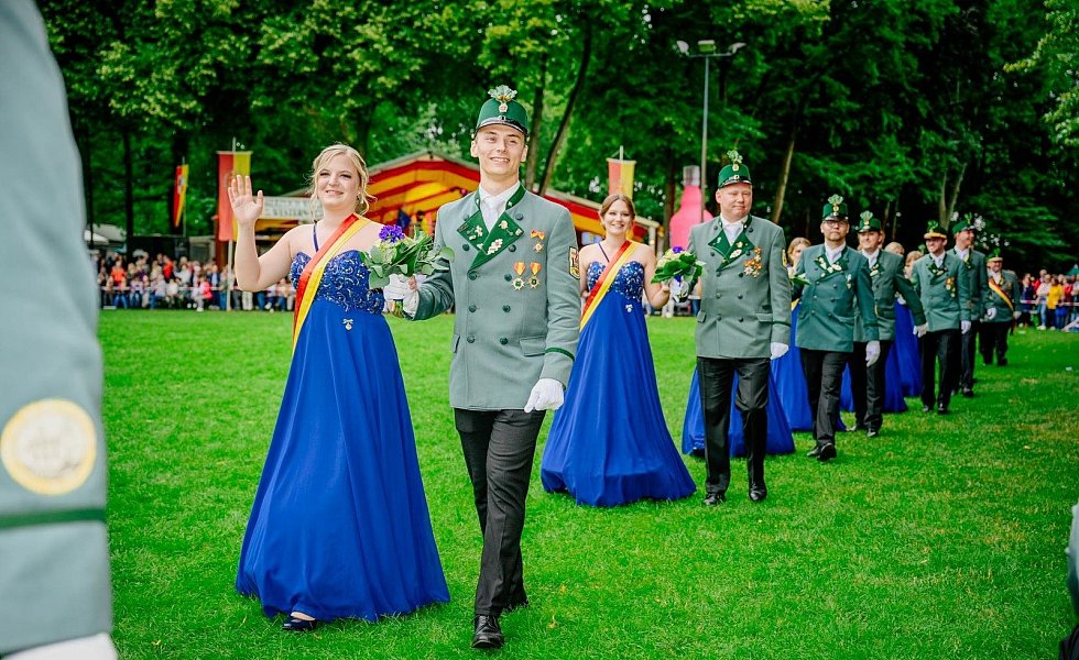 Der Paderborner Bürger-Schützenverein feiert sein 162. Schützenfest mit einem großen Festumzug durch die Innenstadt und der Parade auf dem Schützenplatz.
